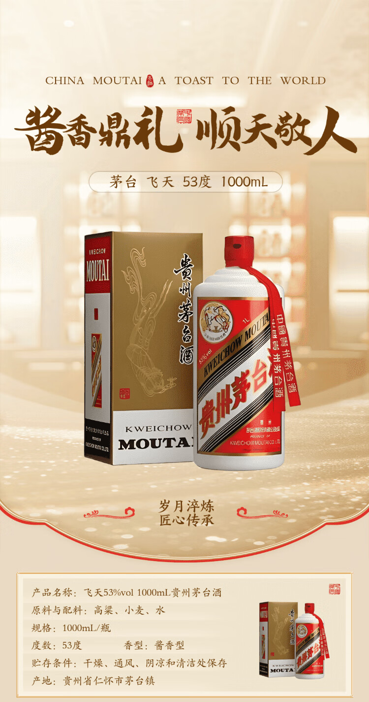 Moutai Feitian Maotai-flavor liquor 53% 1000mL single bottle Famous Liquor Appreciation