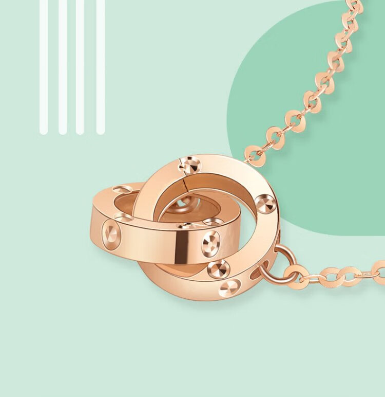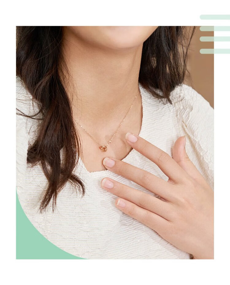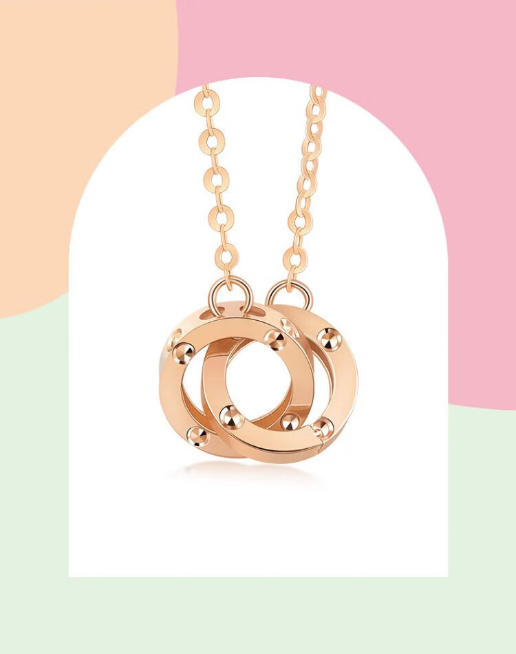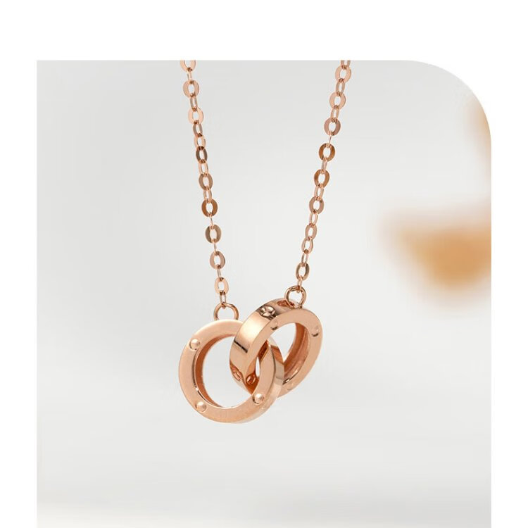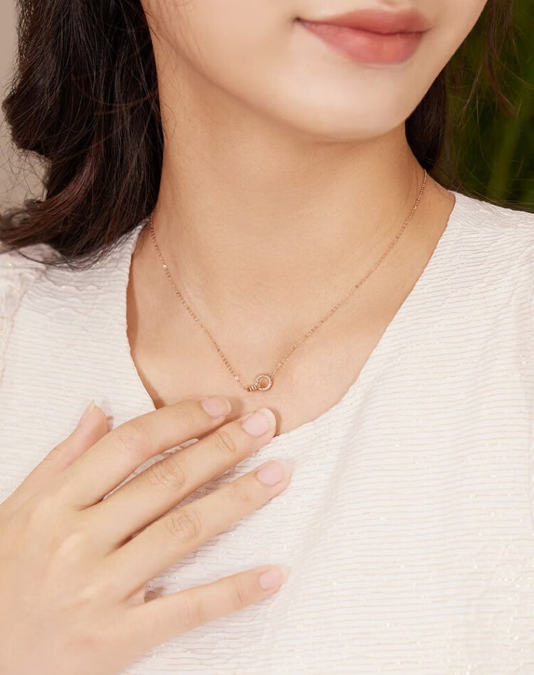 Chow Sang Sang 18K rose gold small round beads double ring color gold necklace women's model 91979N47 cm