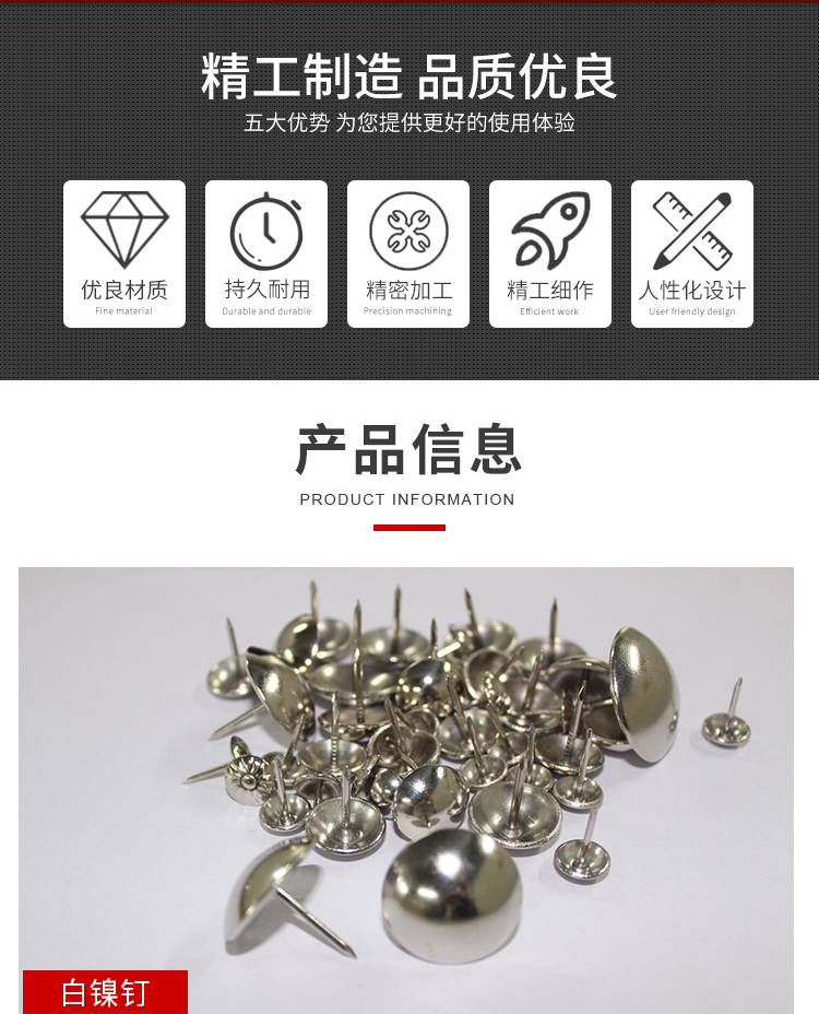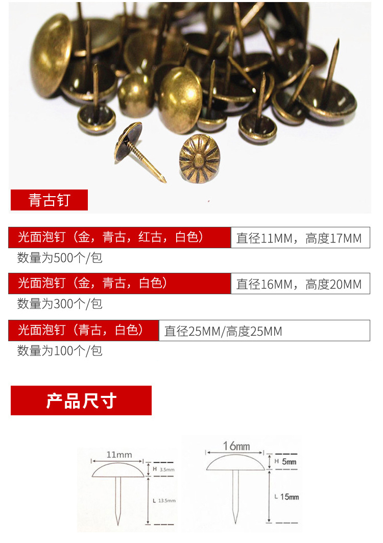 Hasdick Beijing Warehouse Delivery HKDP-44 Large Round Head Nails Antique Nails Large Thumbtacks Soft Pack Hard Pack Decorative Nails Qinggu 11*17mm (100 pcs)