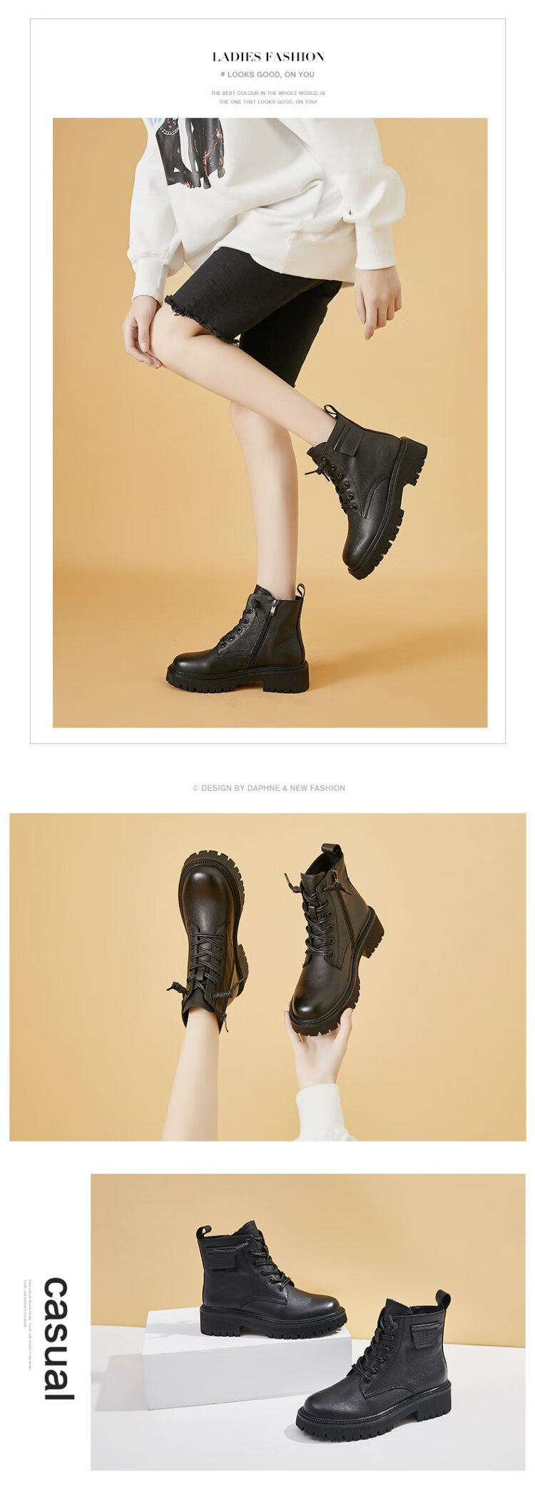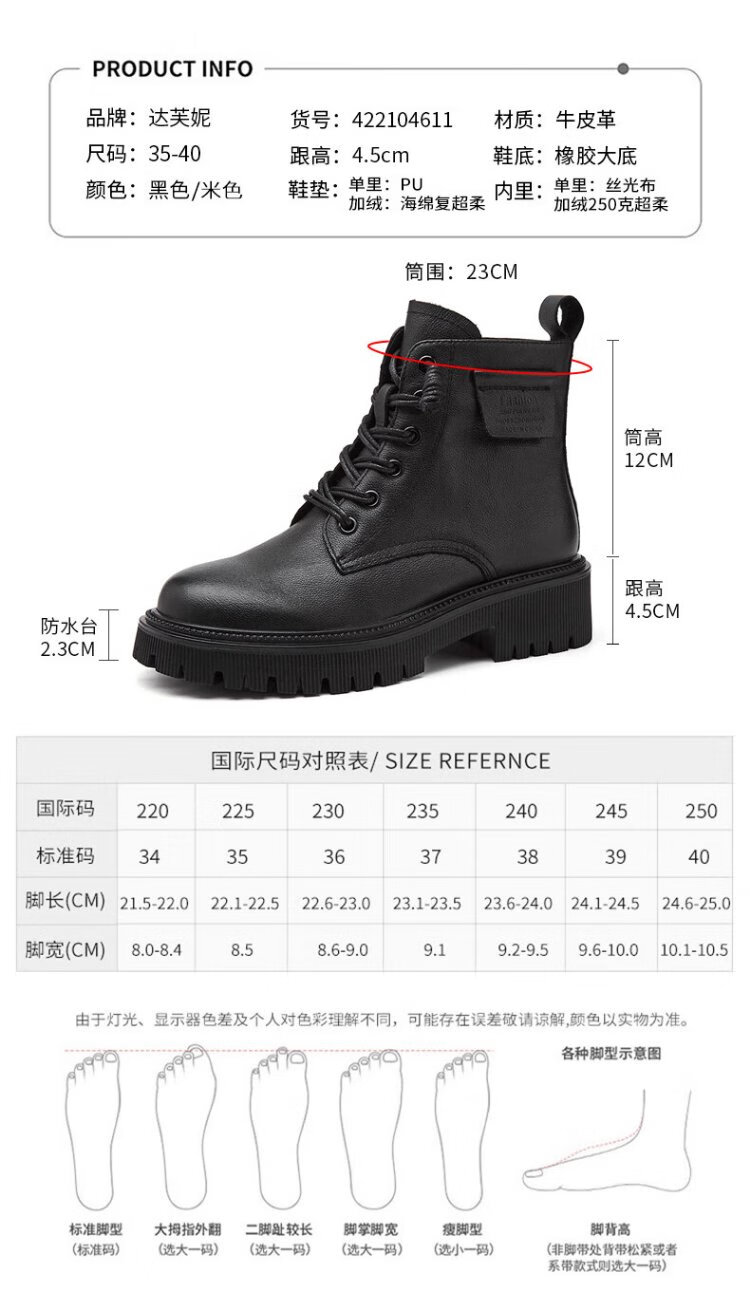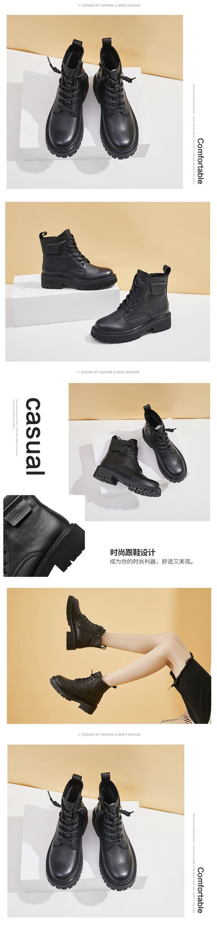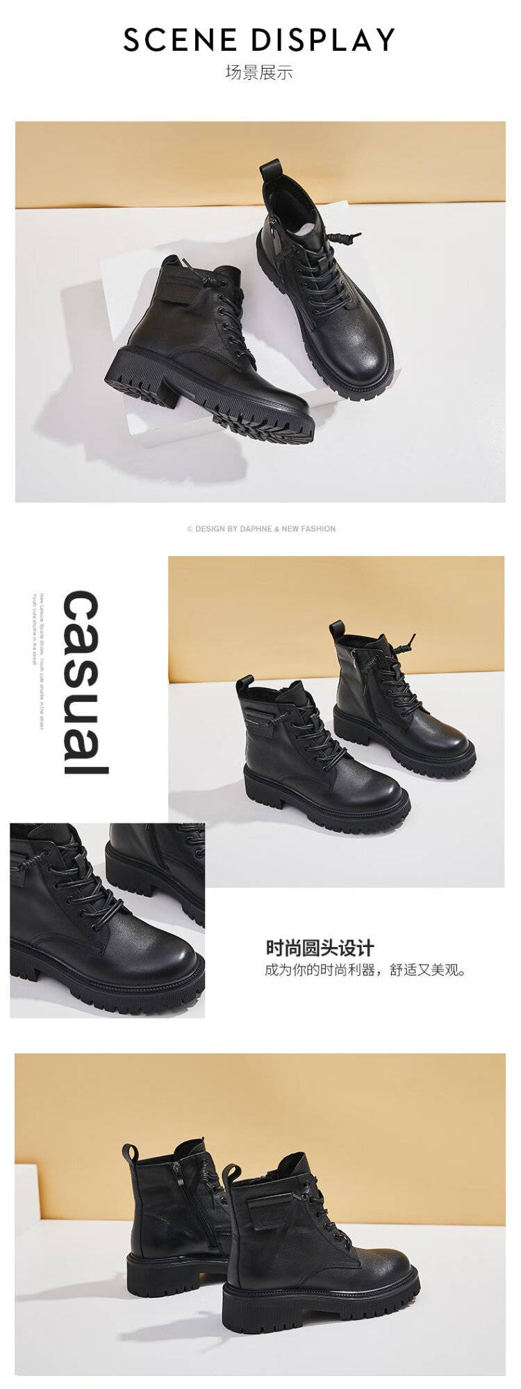 Daphne Martin boots women's new style cowhide British thick high-heeled women's boots plus velvet leather boots women's shoes 422104611W W velvet black 37