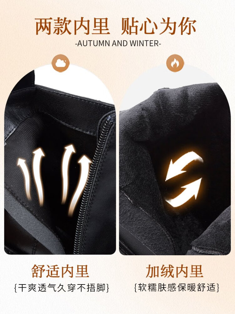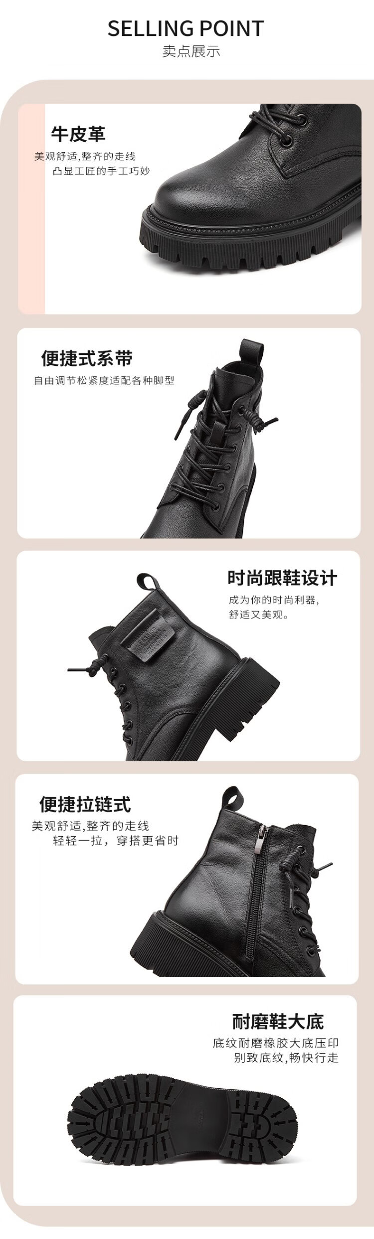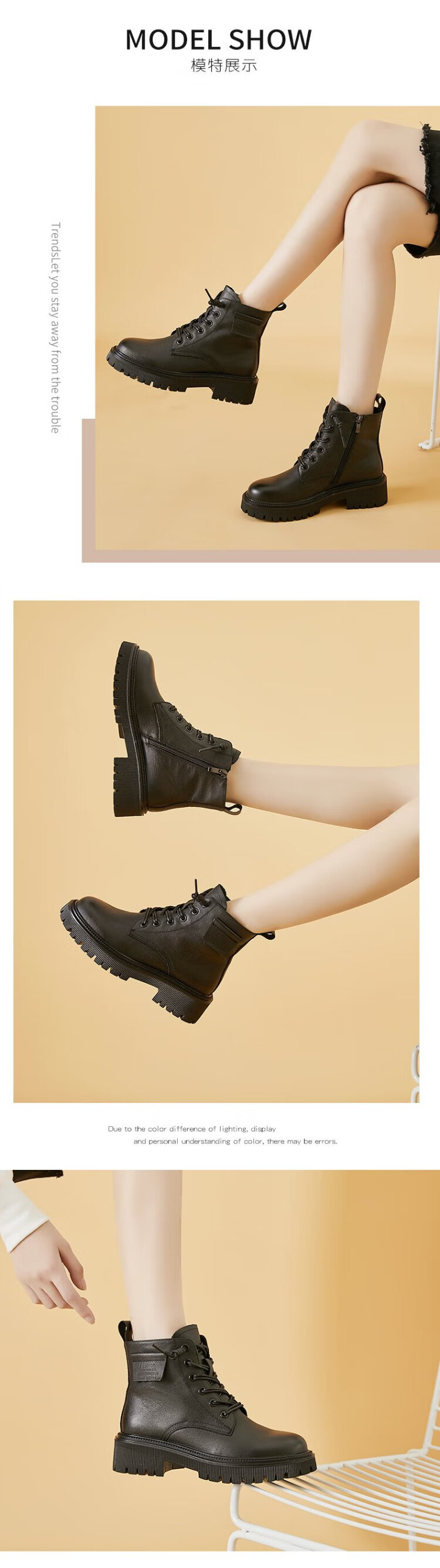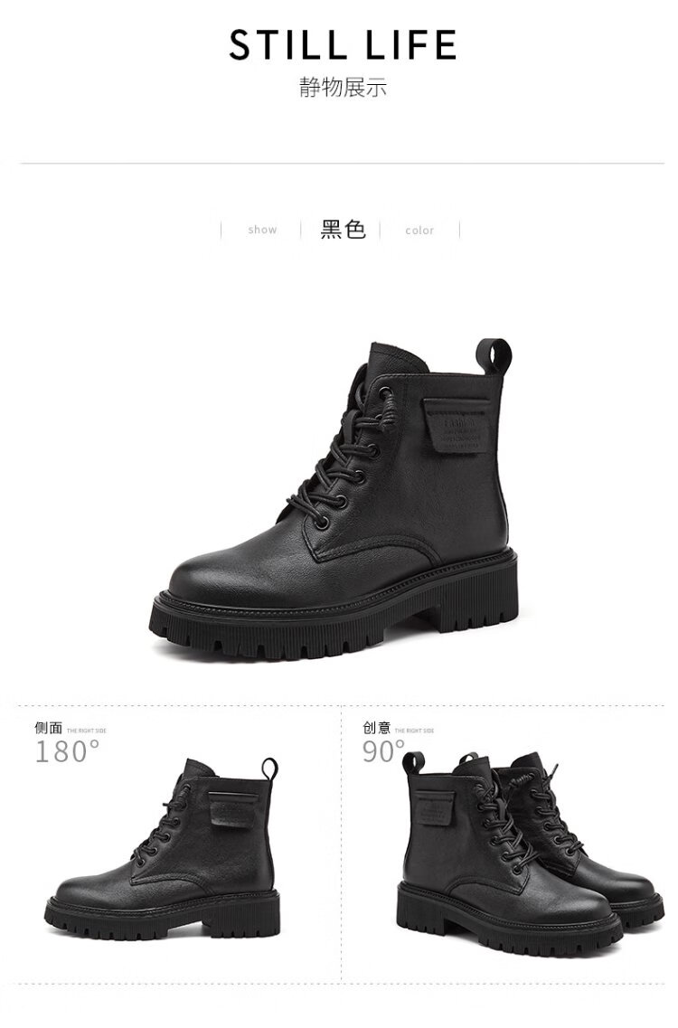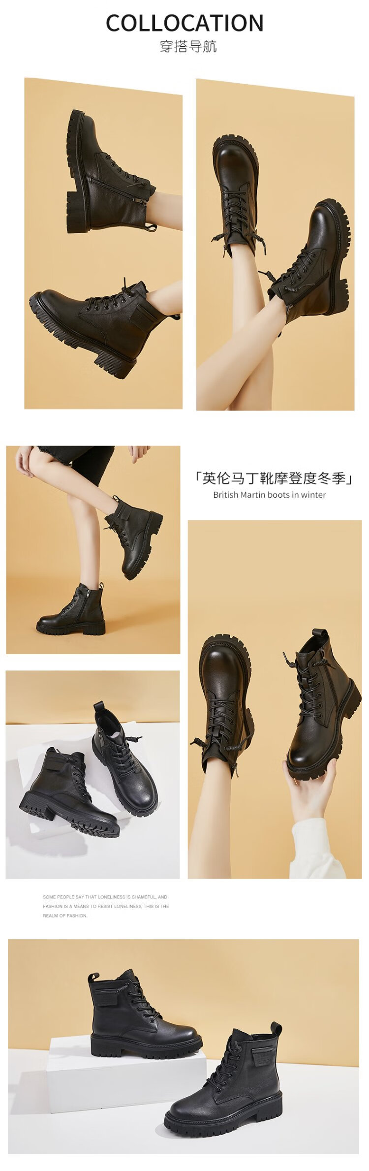 Daphne Martin boots women's new style cowhide British thick high-heeled women's boots plus velvet leather boots women's shoes 422104611W W velvet black 37
