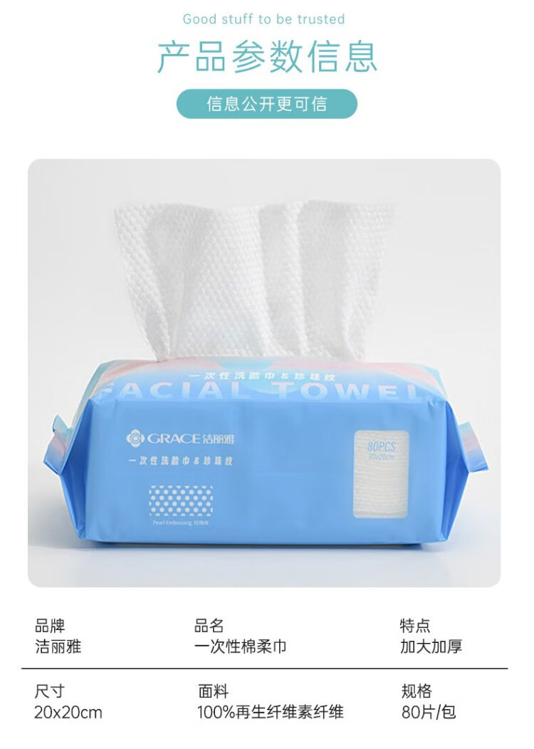 Jialiya disposable face wash cloth, wet and dry, portable travel face wash cloth, pearl pattern 20*20cm, 80 pieces, 1 pack