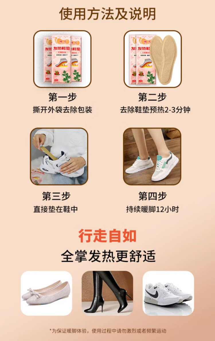 Warm Fire Mugwort Heating Insoles (40 pieces) Men's Foot Warming Pads Sole Warming Pads Warming Baby Heating Insoles
