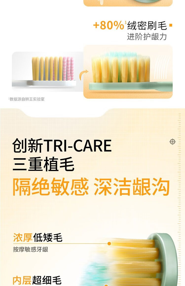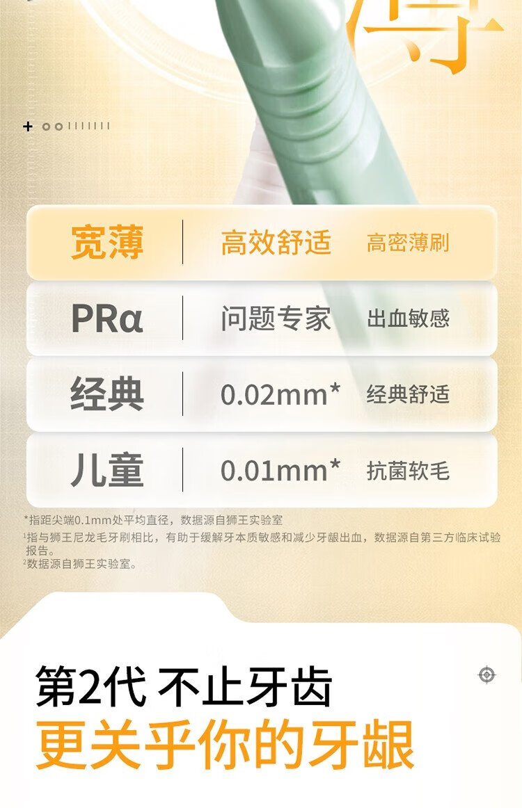 Lion Fine Tooth Cleaning, Wide Thin Tea Anti-Sensitive Toothbrush, 2 Soft-Bristled Adults Relieve Sensitivity and Reduce Bleeding