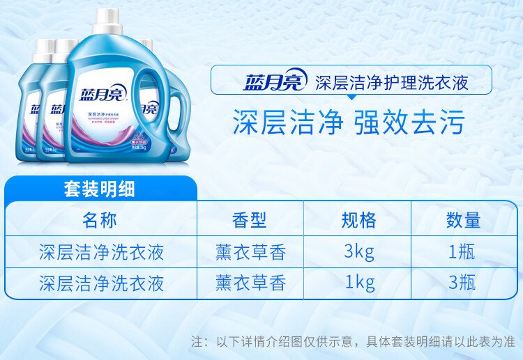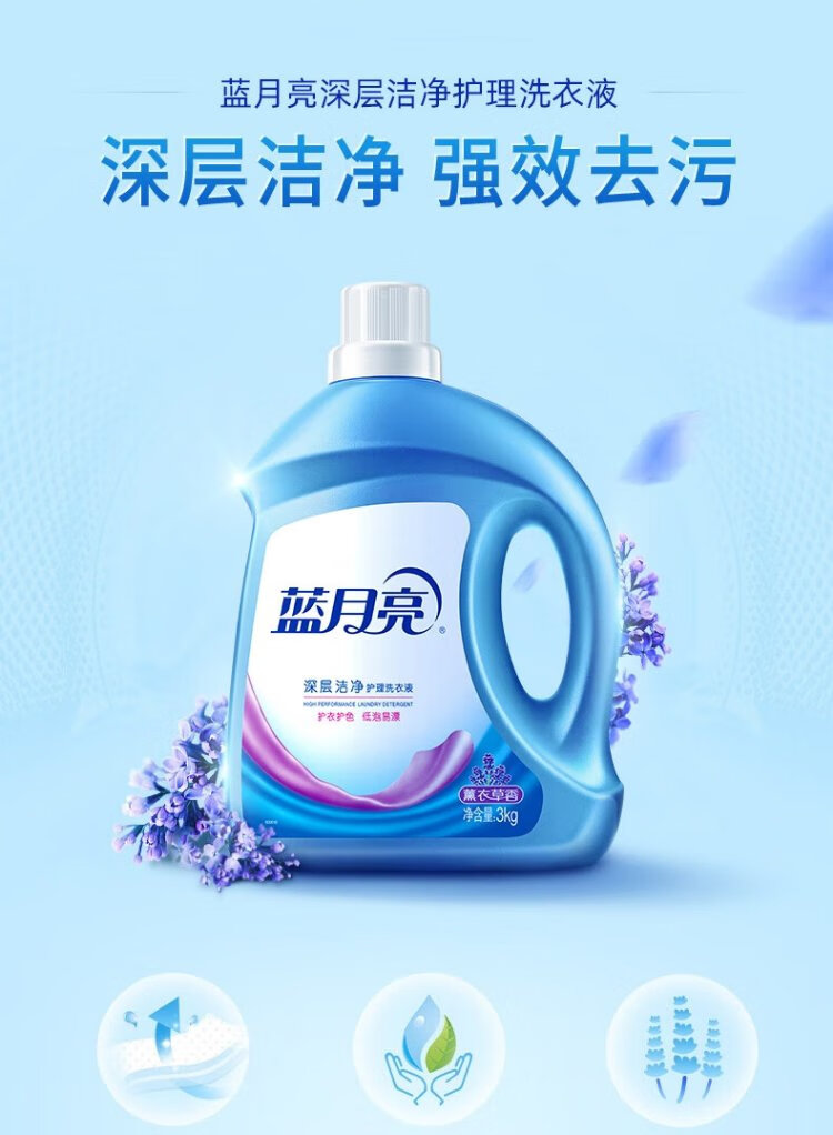 Blue Moon Deep Cleansing Laundry Detergent, Lavender Scent, 3kg bottle + 1kg bottle*3 full bottles, powerful decontamination and easy to rinse