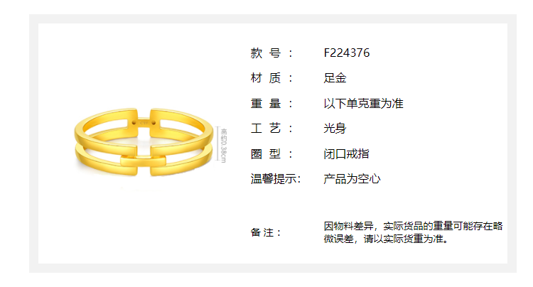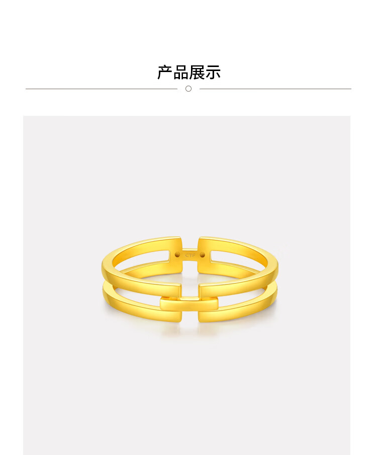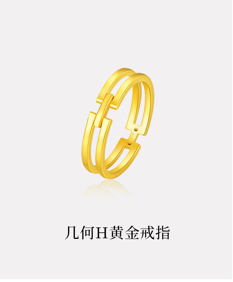 Chow Tai Fook double layer H gold ring for women (labor fee 220) size 14, about 1.35g F224376