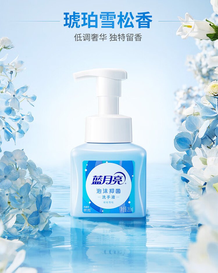 Blue Moon Foaming Hand Sanitizer Healthy Antibacterial 99.9% Rich Foam Moisturizing Easy to Rinse (Amber Cedar) 255ml