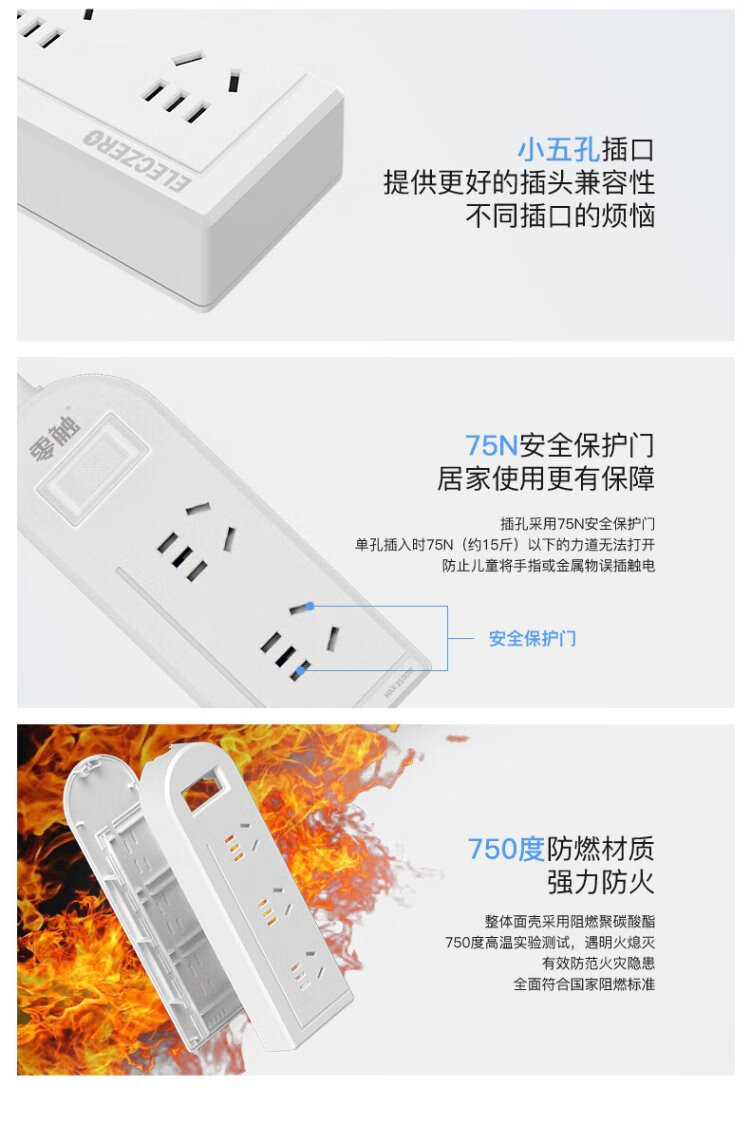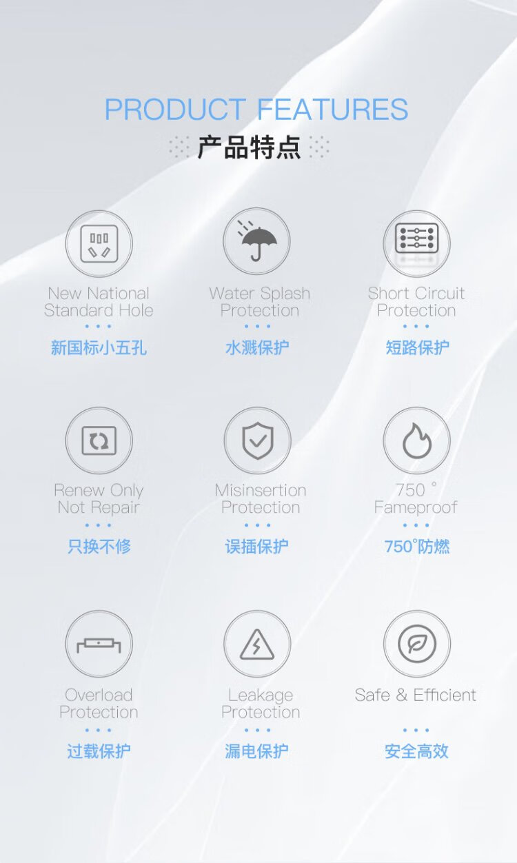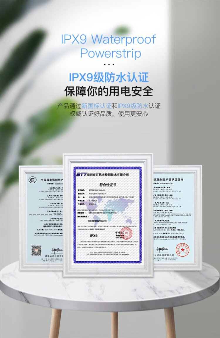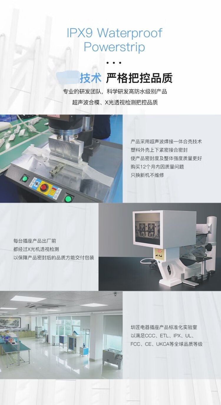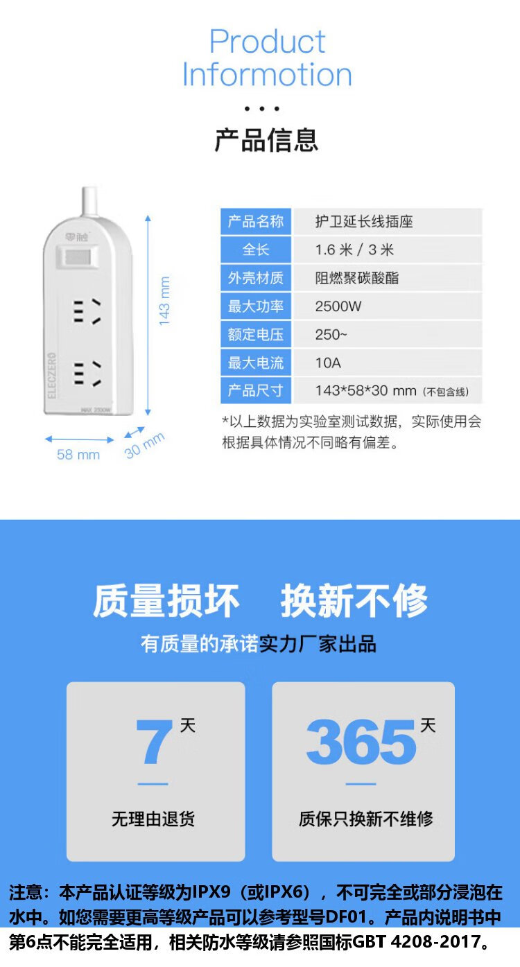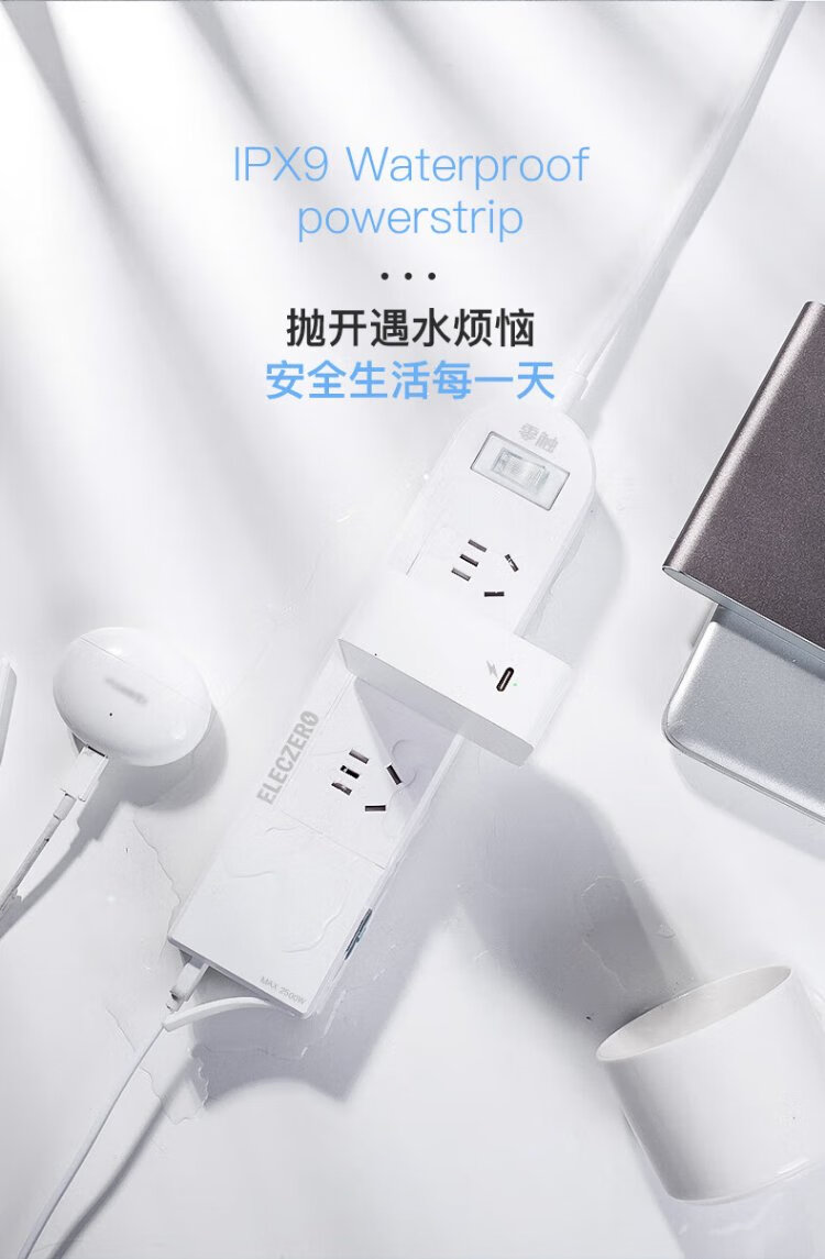 KPQ zero-touch KPQ non-electric shock socket IPX9 level waterproof overload short circuit protection plug strip outdoor rainproof plug strip kitchen bathroom moisture-proof children's anti-electric shock DF02 total length 1.6 meters