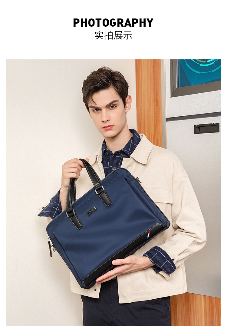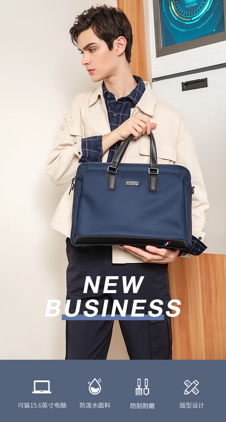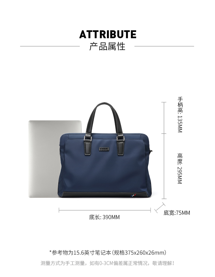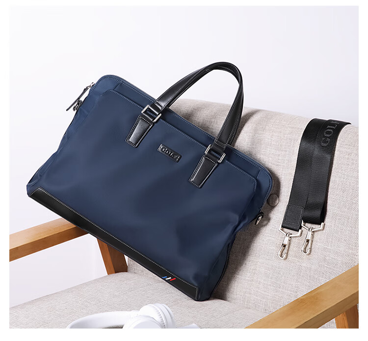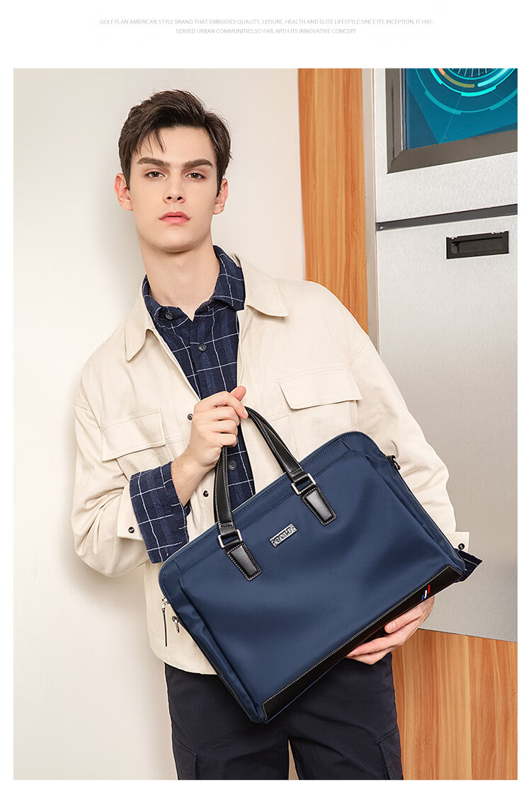 Golf GOLF business briefcase men's fashionable nylon water-repellent large-capacity handbag multi-functional horizontal shoulder crossbody casual men's bag 5I568364J blue with black
