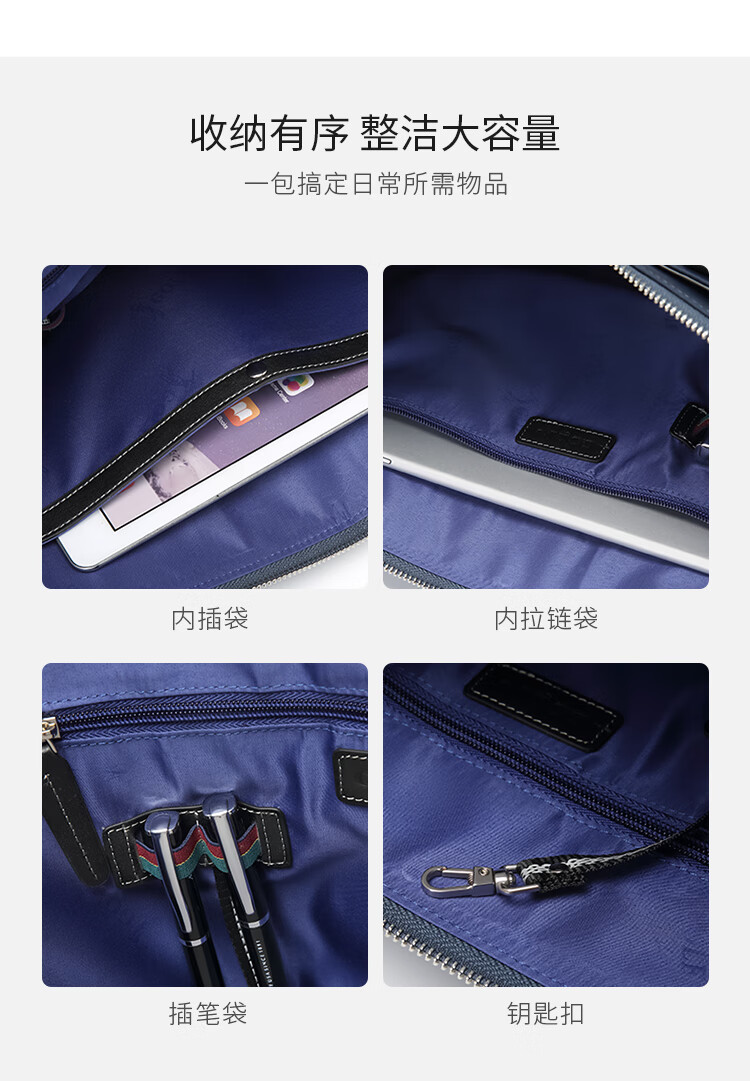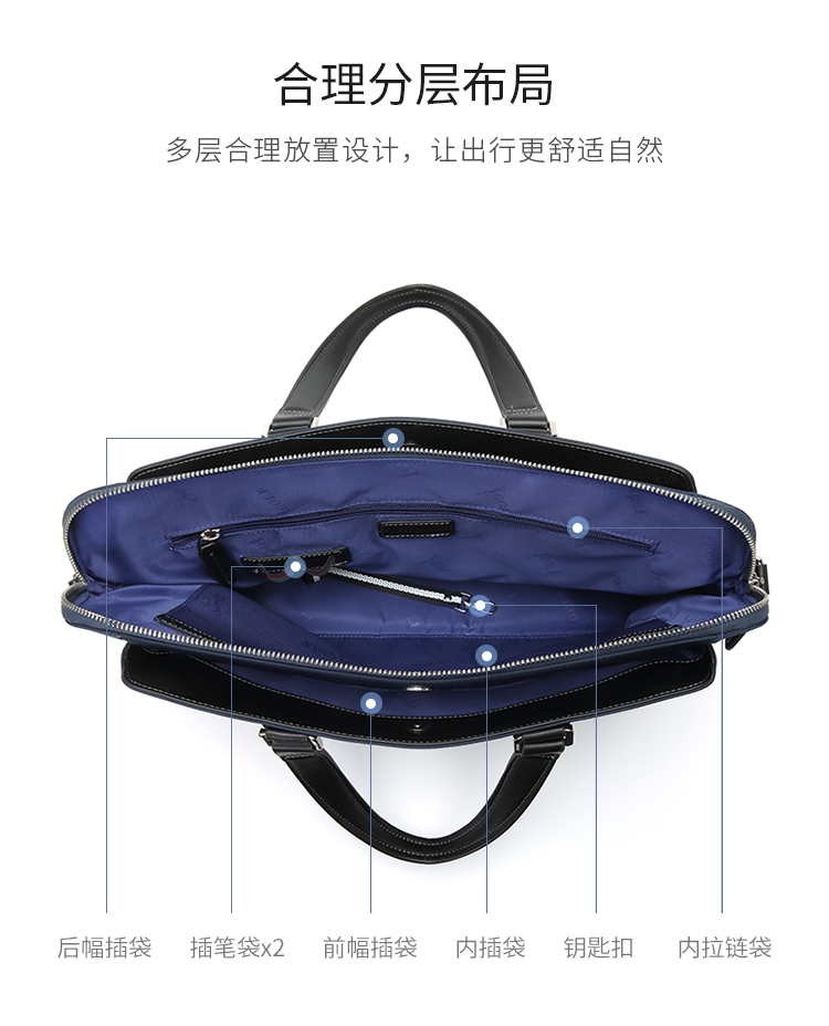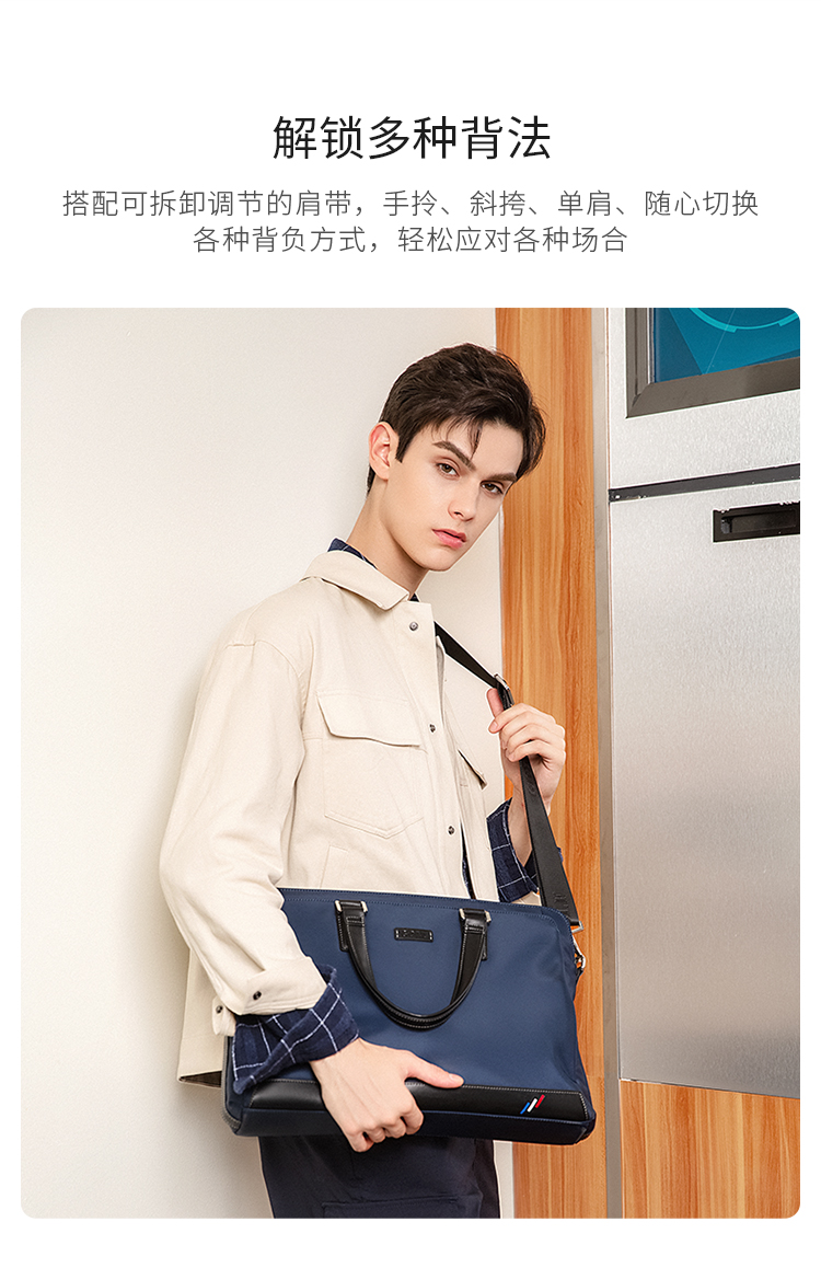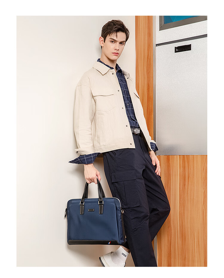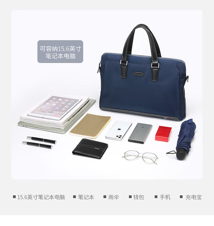 Golf GOLF business briefcase men's fashionable nylon water-repellent large-capacity handbag multi-functional horizontal shoulder crossbody casual men's bag 5I568364J blue with black
