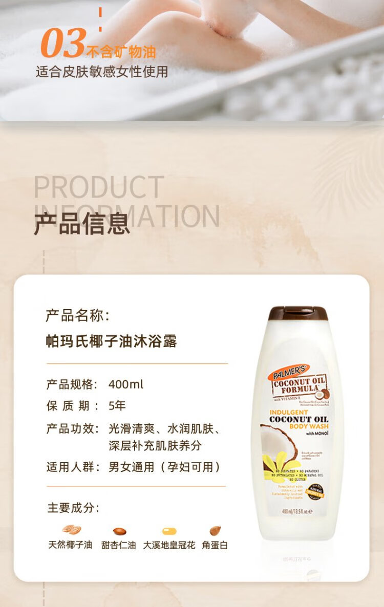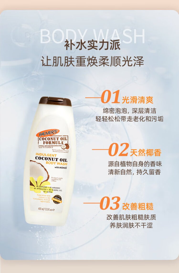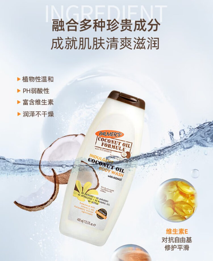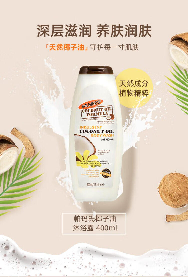 Palmer's Coconut Oil Shower Gel 400ml Mild, Moisturizing and Refreshing Shower Gel