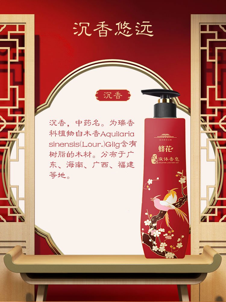 Bee flower soap bath lasting fragrance 72 hours body sandalwood liquid soap moisturizing face wash bath men 500g