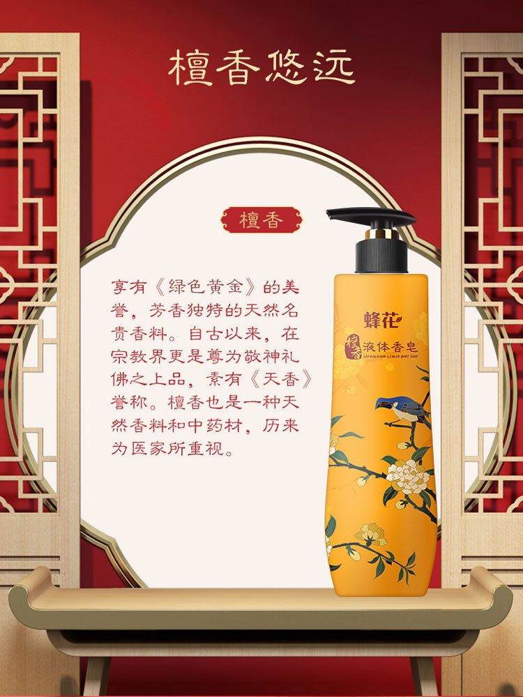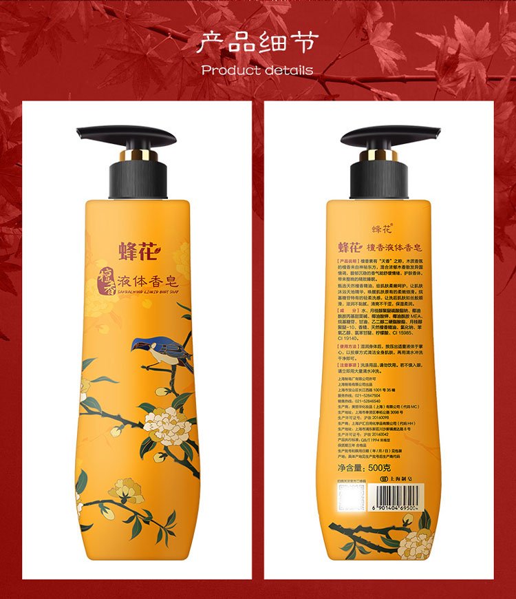 Bee flower soap bath lasting fragrance body sandalwood liquid soap moisturizing face wash bath men 500g