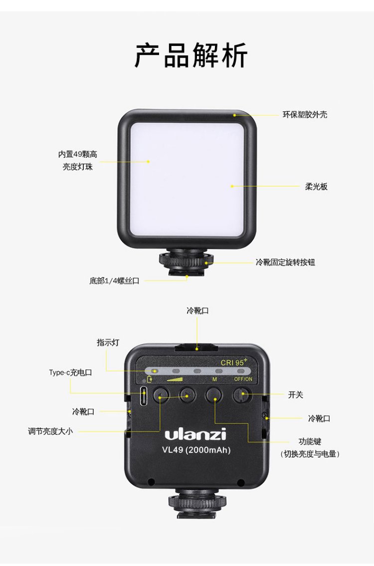 Ulanzi Ulanzi VL49 fill light live broadcast mini led mobile phone camera soft light SLR camera hot shoe accessories photography light indoor portable handheld light