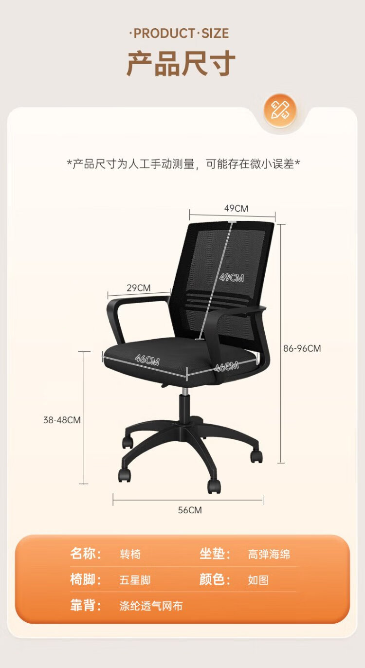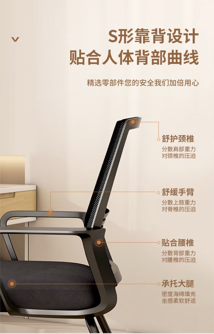 ZHONGWEI office chair computer chair bow conference chair employee chair ergonomic chair home study chair mesh chair