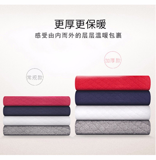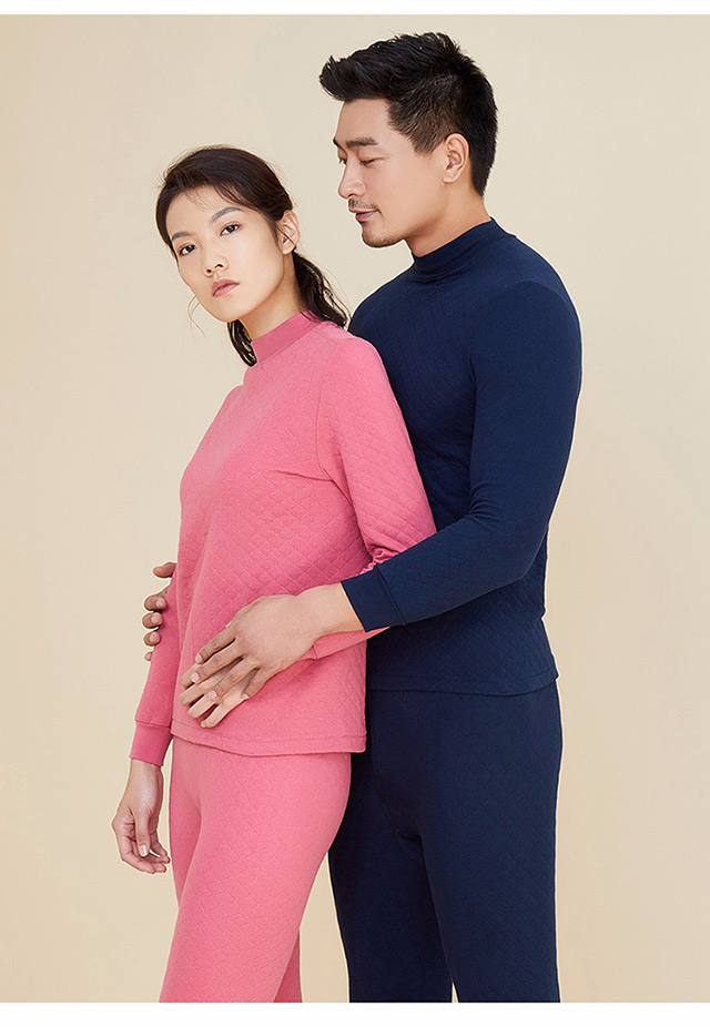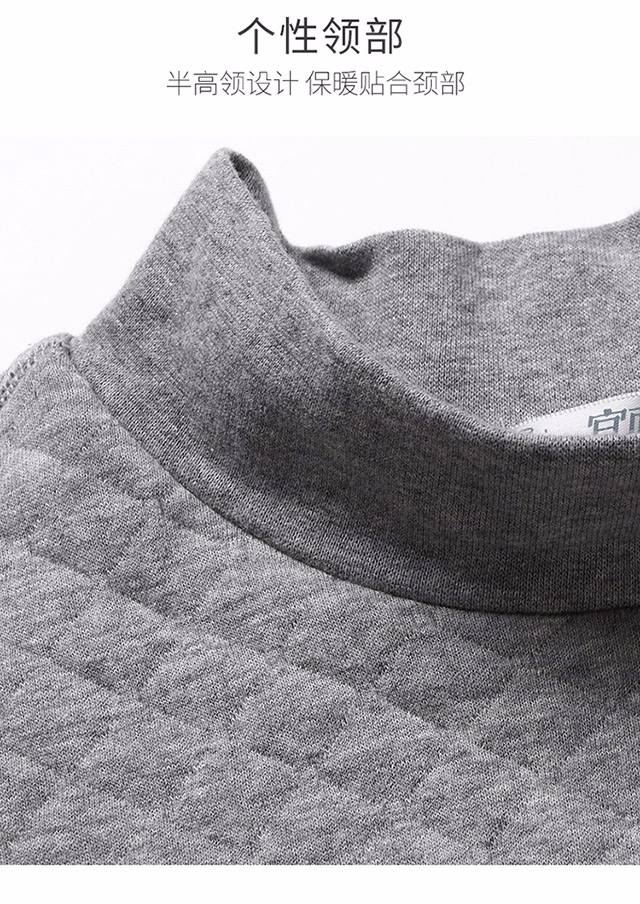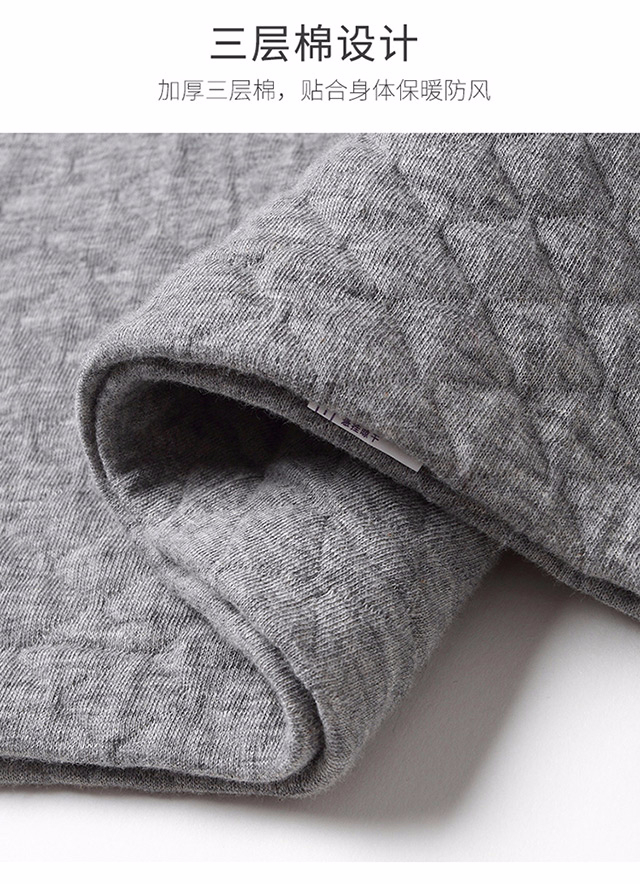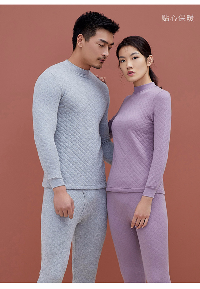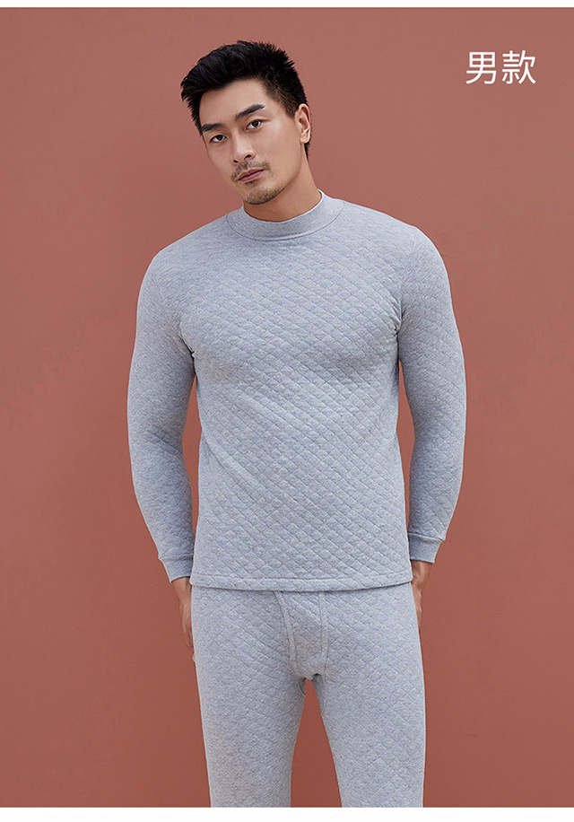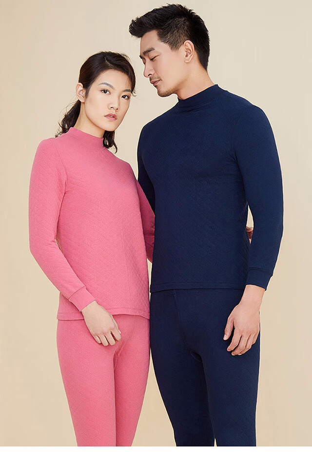 宜而爽【半高领三层加厚】100%纯棉保暖内衣男女款秋衣秋裤套装秋冬