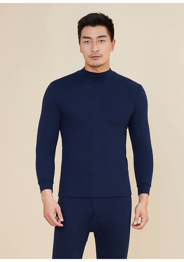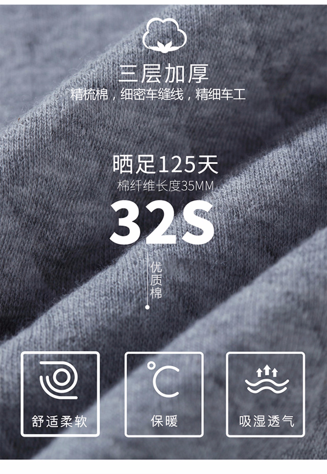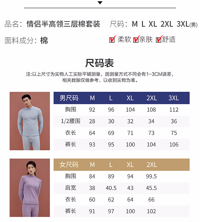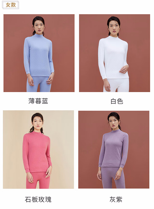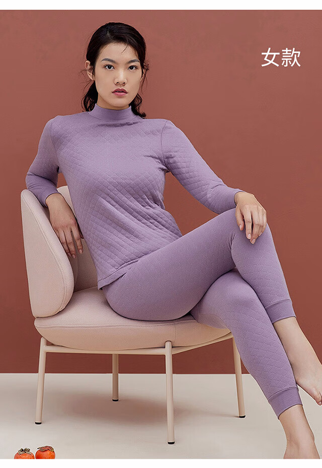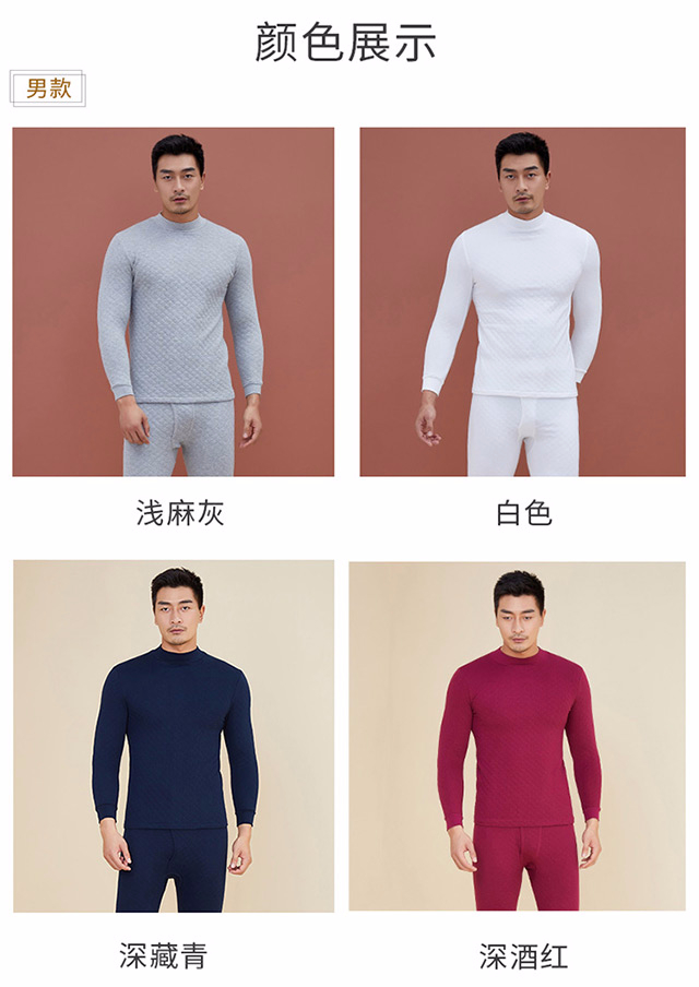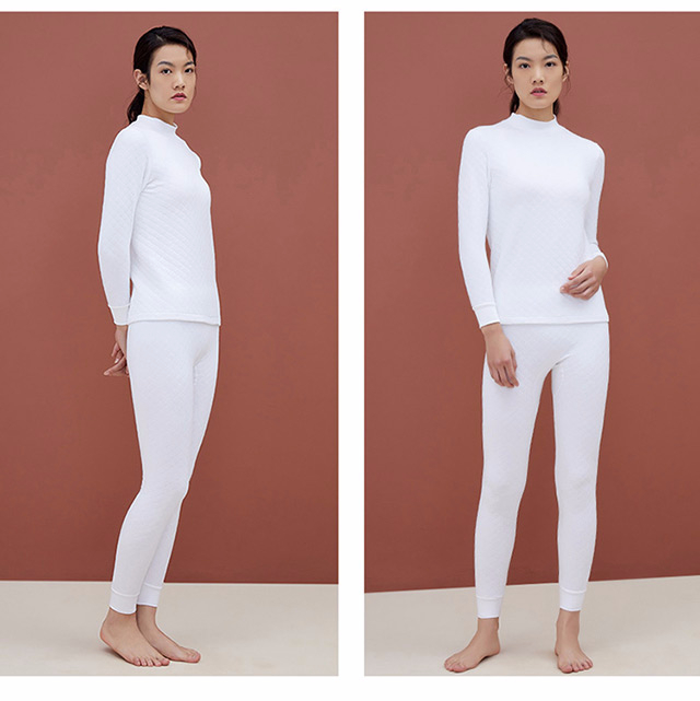 宜而爽【半高领三层加厚】100%纯棉保暖内衣男女款秋衣秋裤套装秋冬
