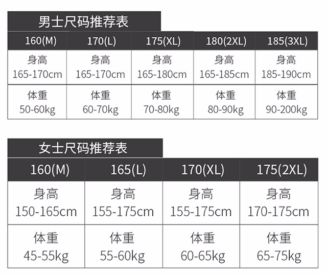 China (cm) 165 / 88-90 170 / 96-98 175 / 108-110 180 / 118-122 185 / 126-130