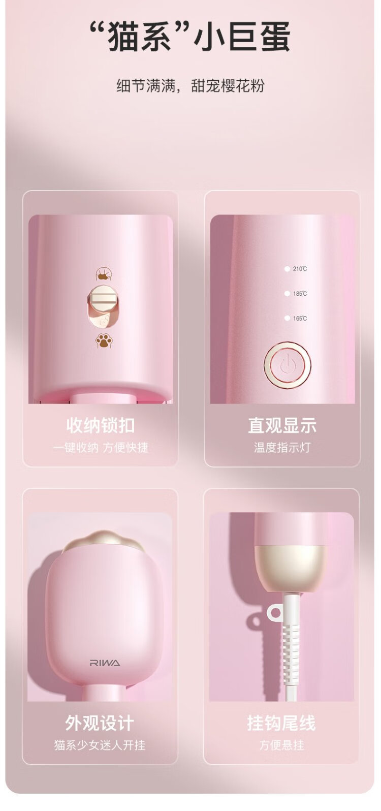RIWA egg roll curling iron deep V fluffy splint 32mm negative ion French egg roll perm high skull fluffy artifact popular cat claw curling iron RB-8120-ION