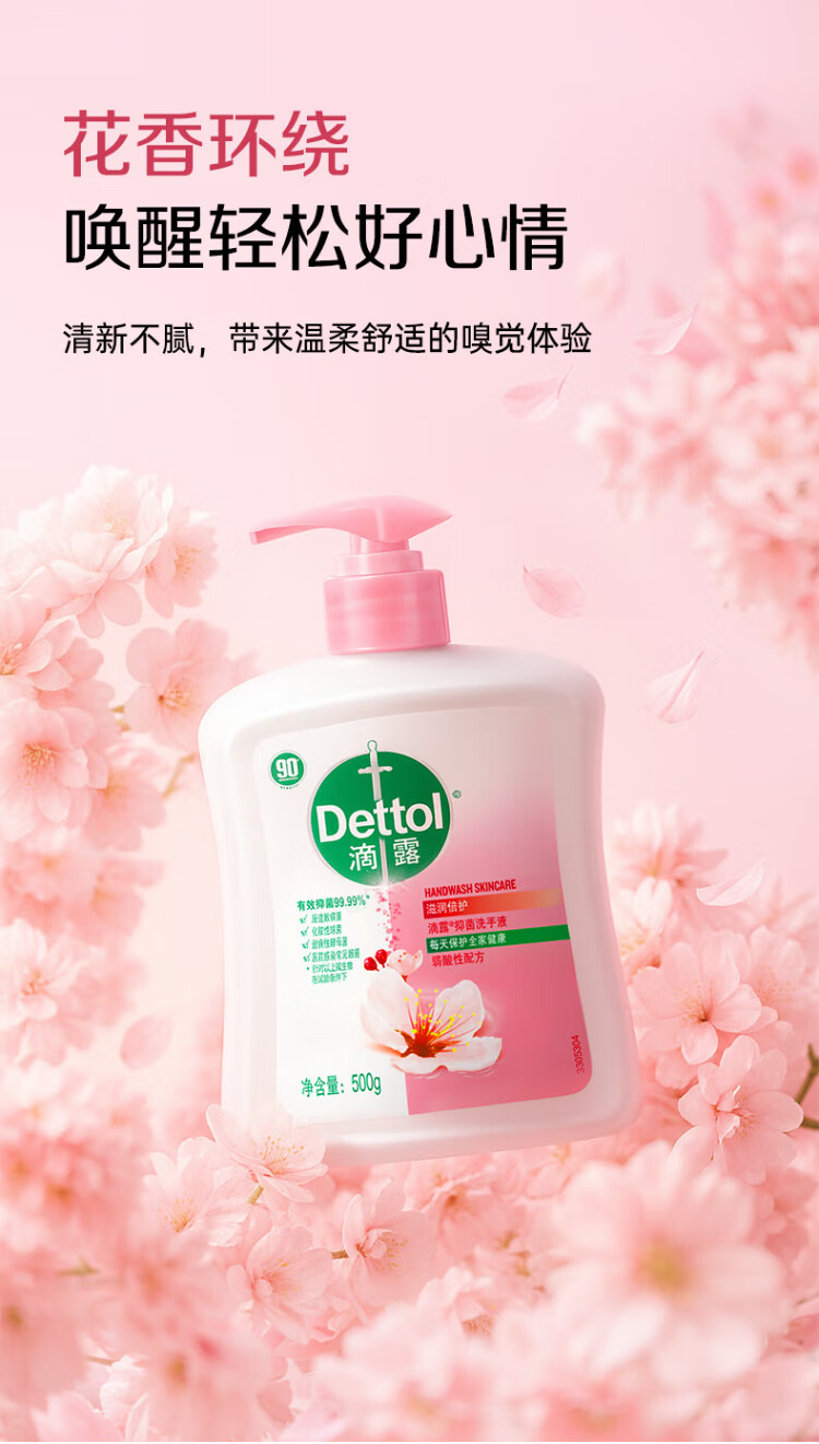 Dettol hand sanitizer moisturizing 500g*6 antibacterial hand sanitizer family large bucket children's disinfection alcohol-free mild hand protection