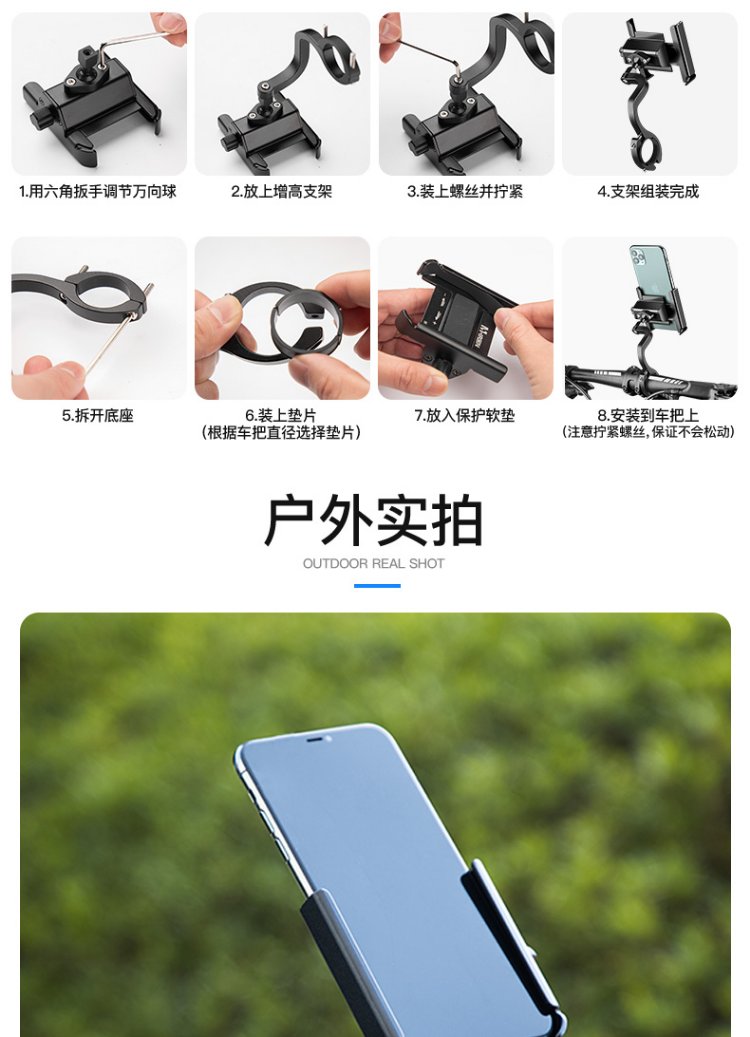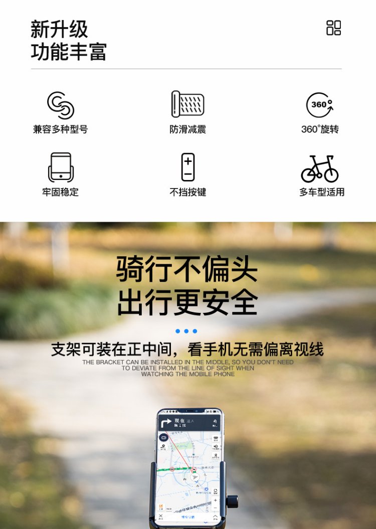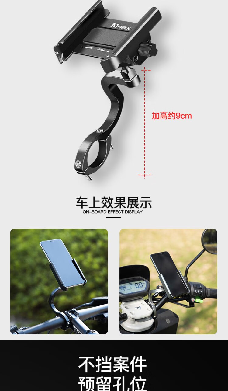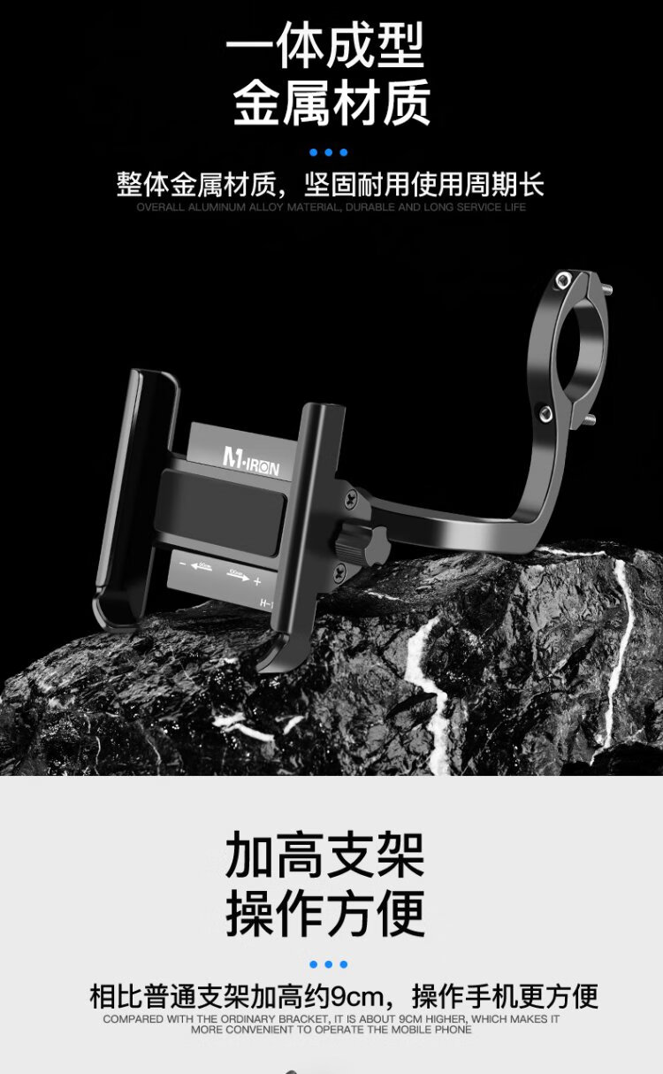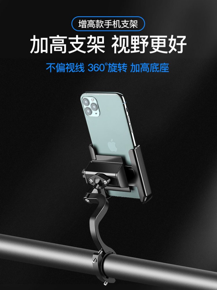Magic Wheel Bicycle Mobile Phone Holder Electric Motorcycle Mobile Phone Holder Fixed Cycling Navigation Bracket Heightened Handlebar Model Black