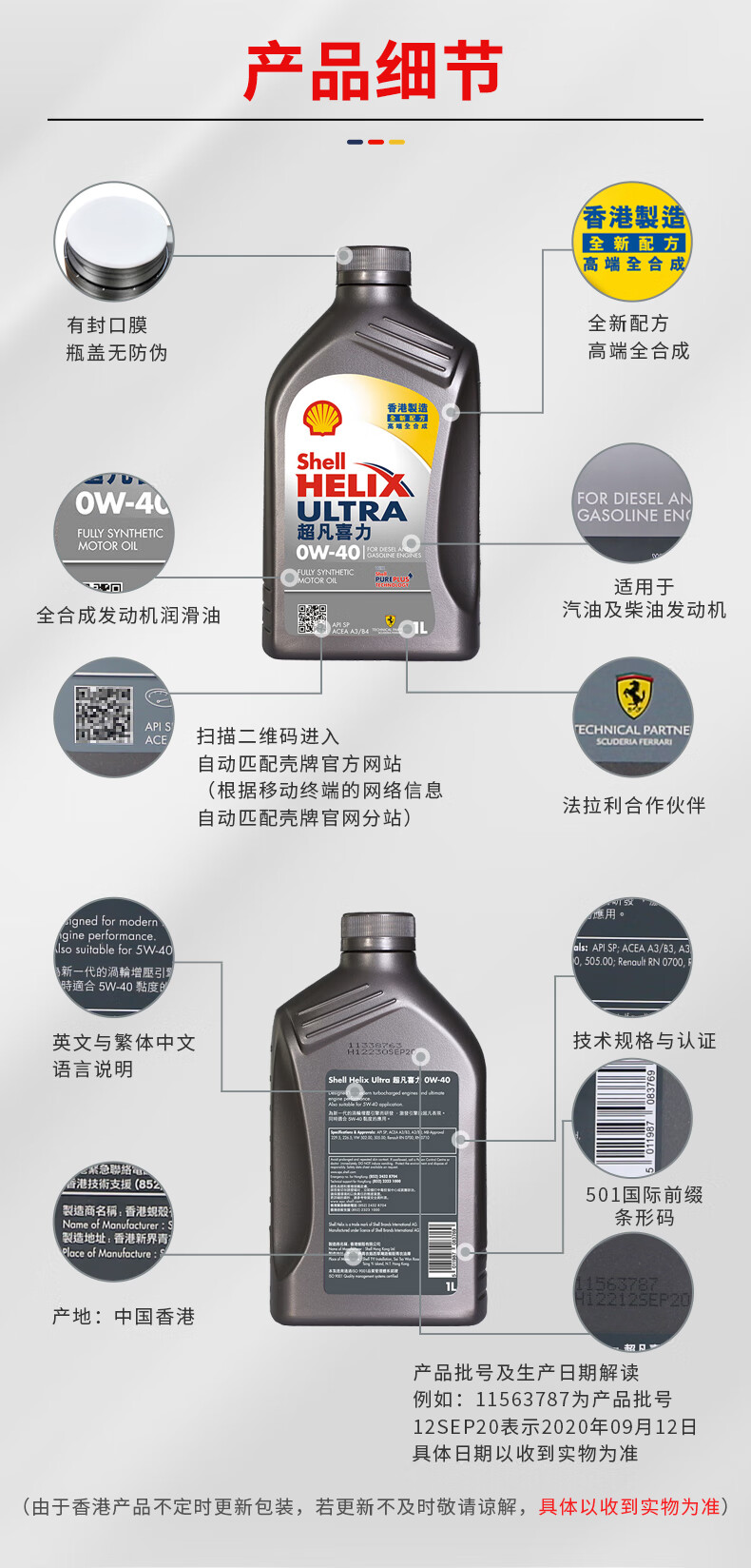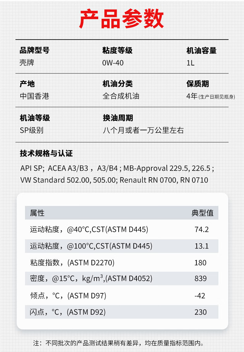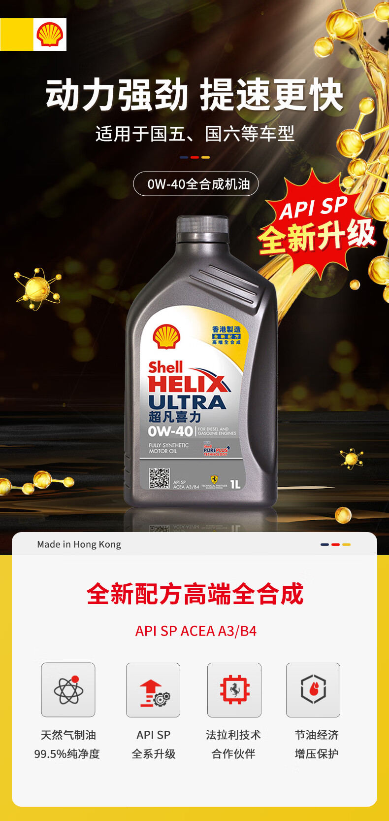 Shell (Shell) fully synthetic motor oil Extraordinary Helix 0W-40 API SP A3/B4 level 1L gray shell maintenance imported from Hong Kong