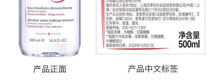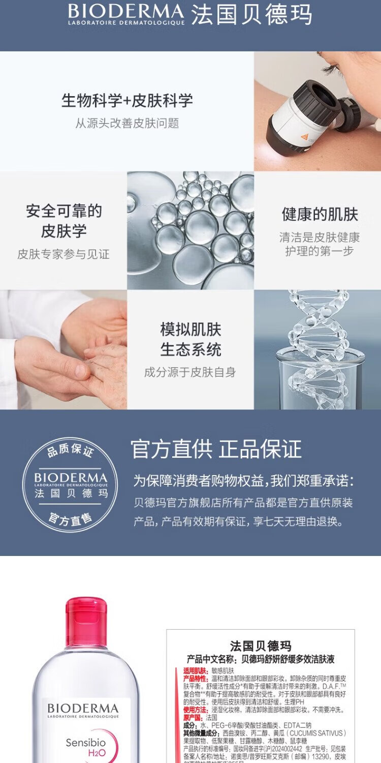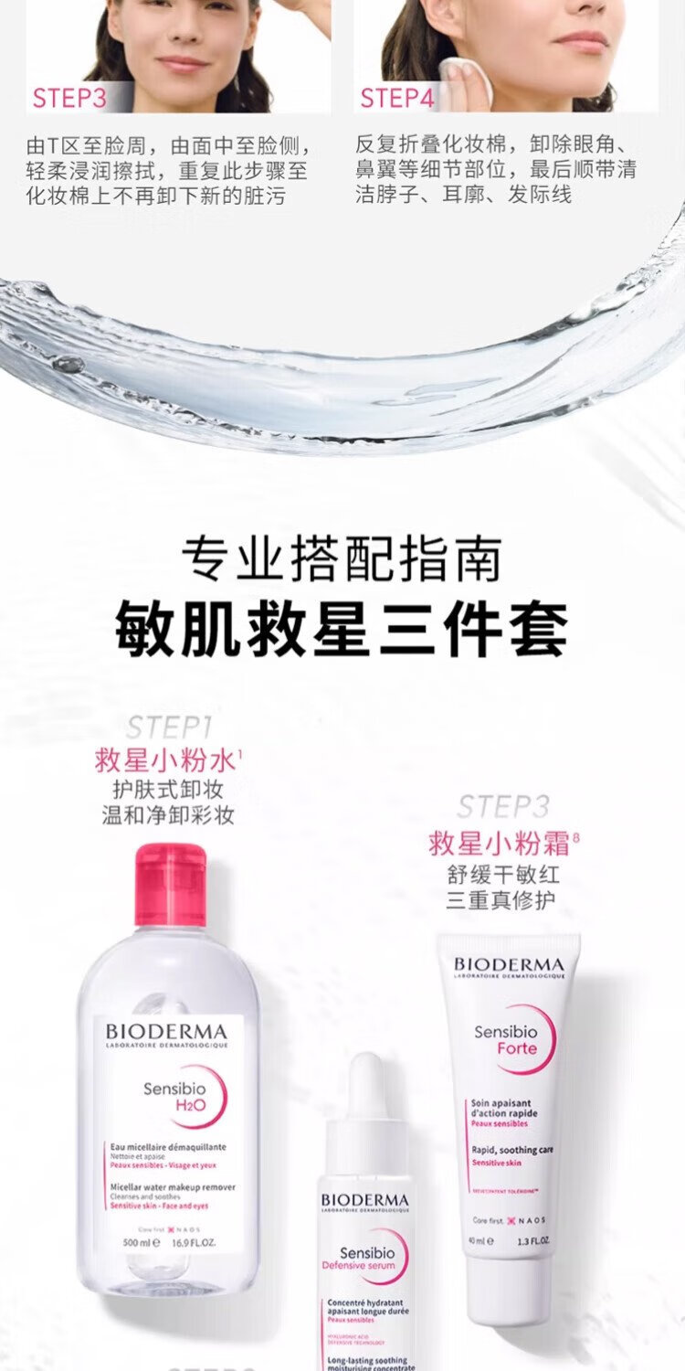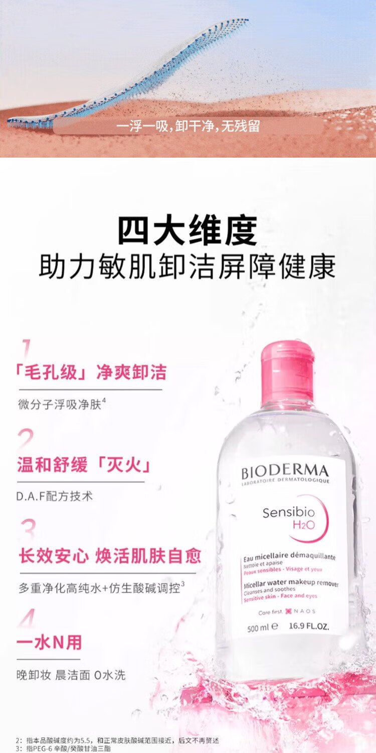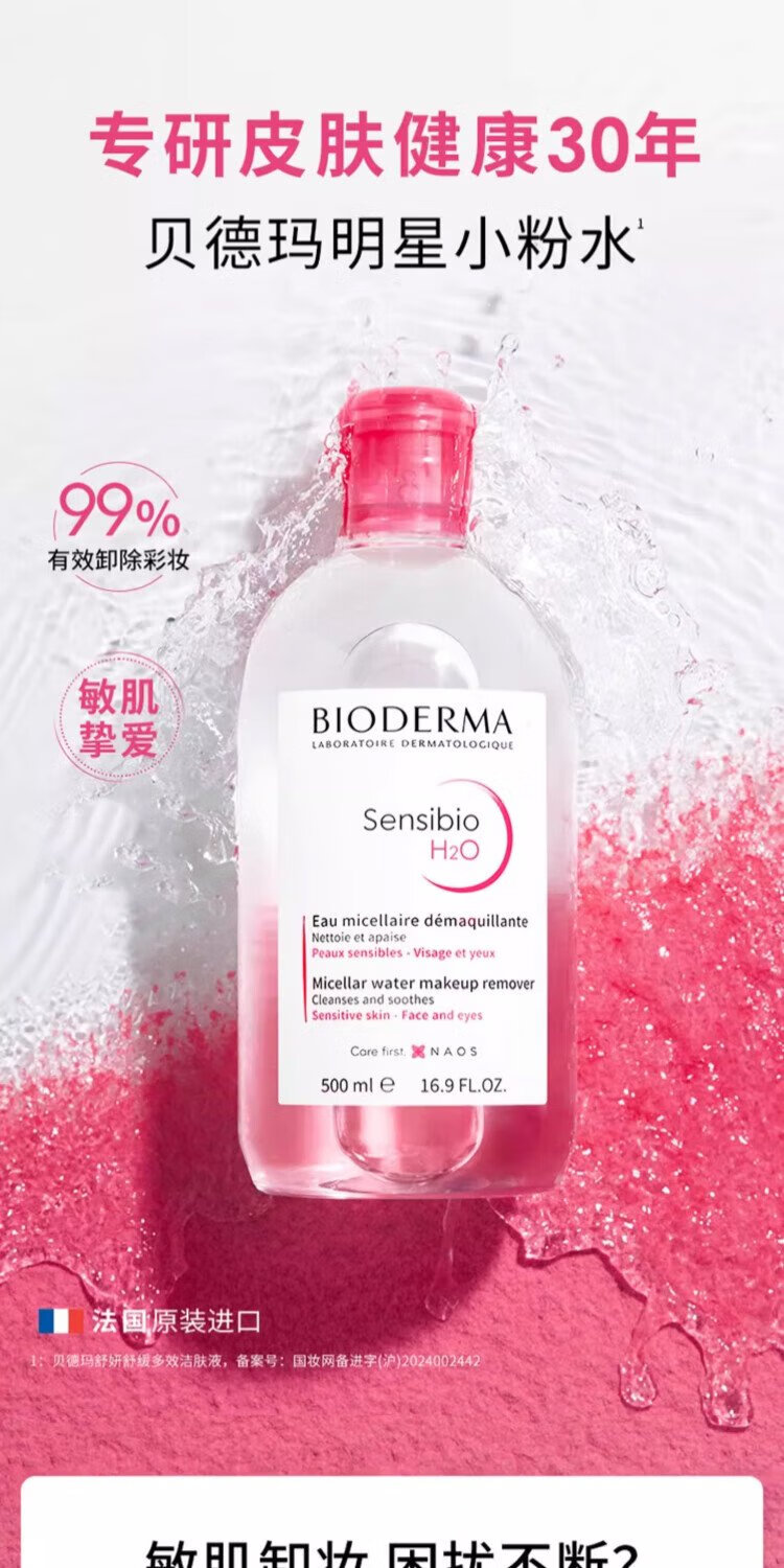 BIODERMA Double 11 Pink Water Soothing Cleansing Liquid Makeup Remover for Sensitive Skin Gentle No Washing 500ml*2