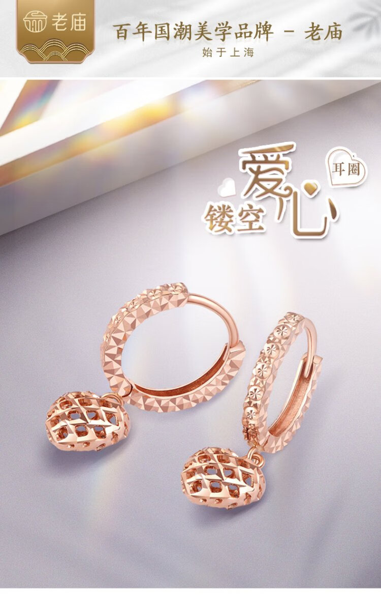 Laomiao 18k gold earrings, rose gold earrings, glossy hoop earrings for girlfriend, birthday gift for wife