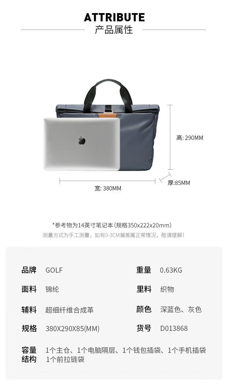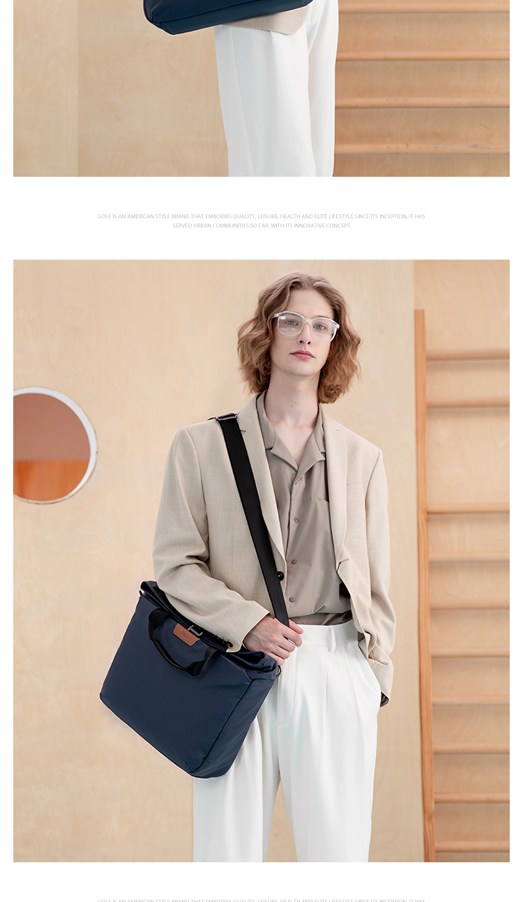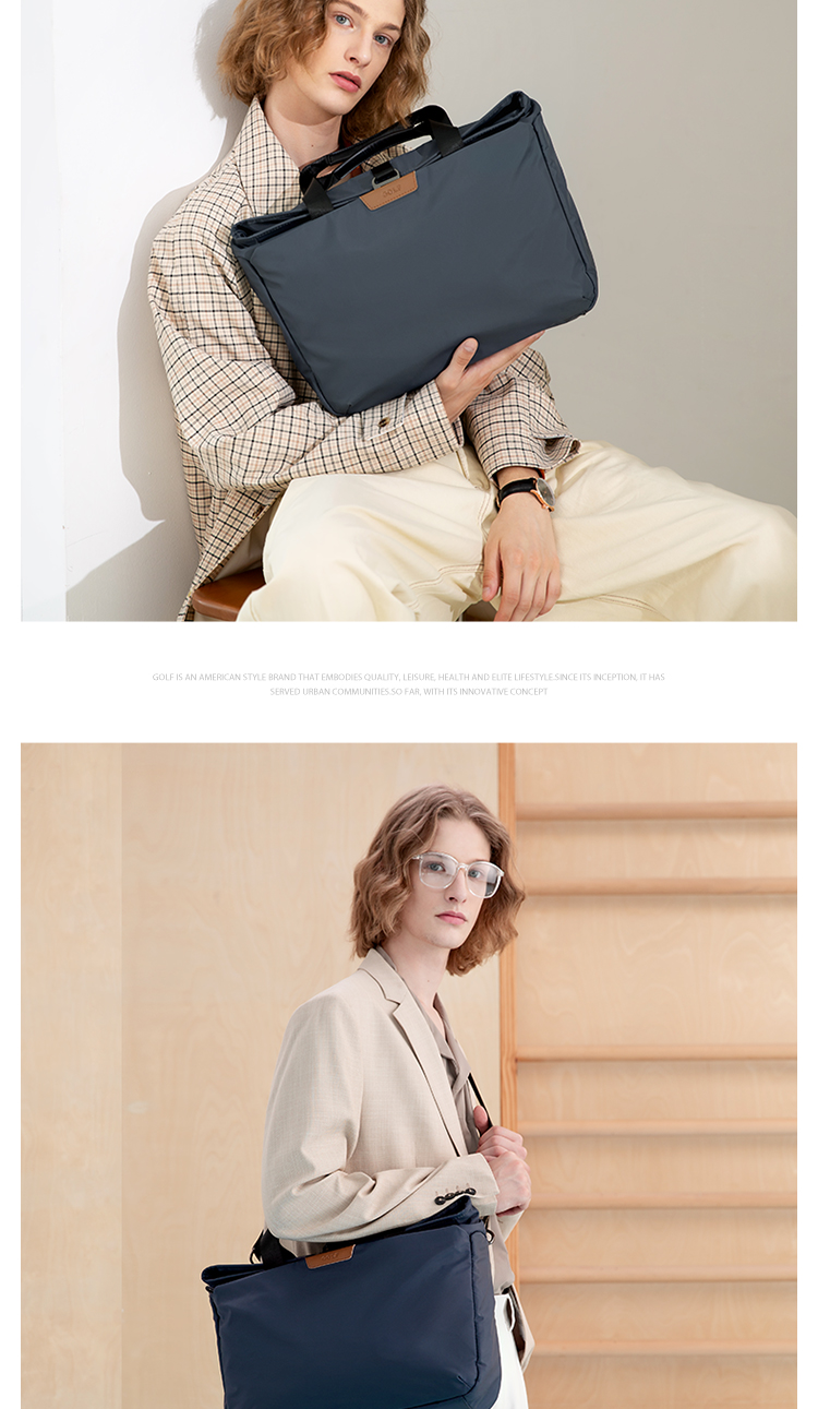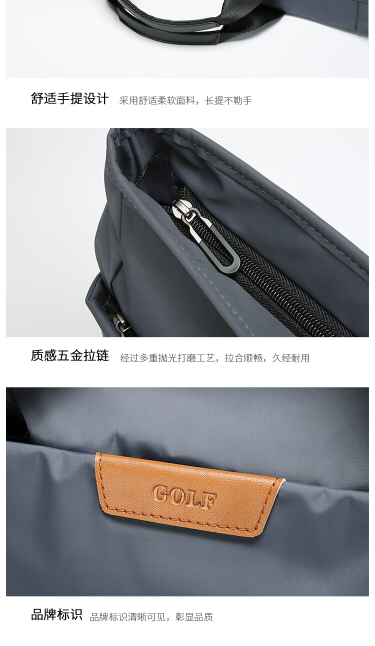 Golf GOLF business briefcase men's casual large-capacity handbag can hold 14-inch laptop bag fashionable multi-functional shoulder crossbody bag 6J679424J gray