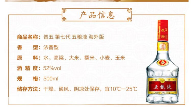 Wuliangye Puwu seventh generation strong-flavor liquor 52% 500ml single bottle gift overseas version officially authorized