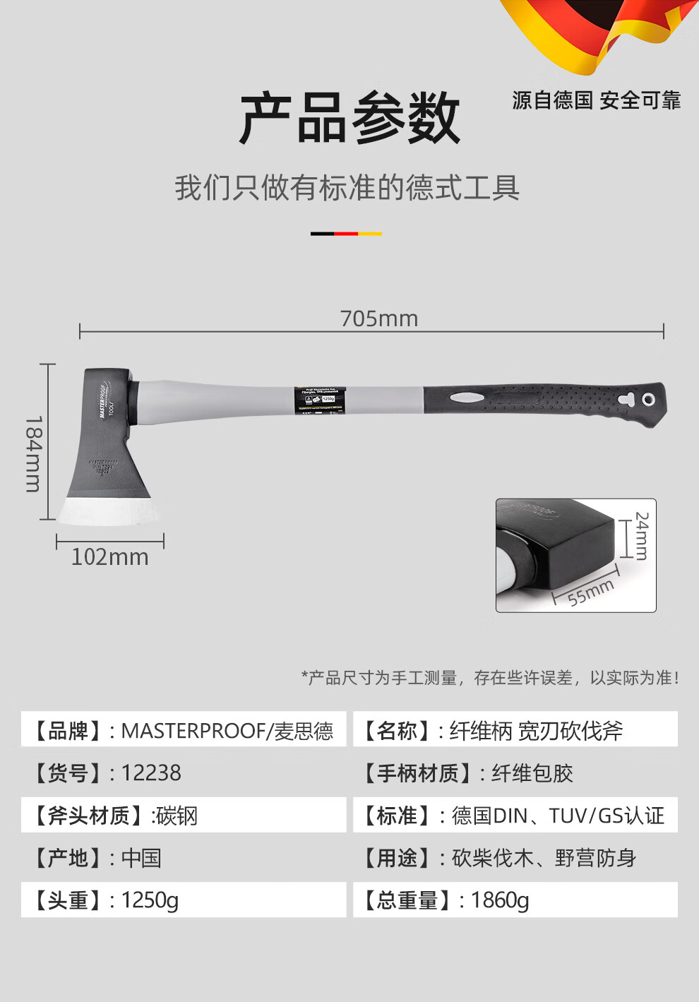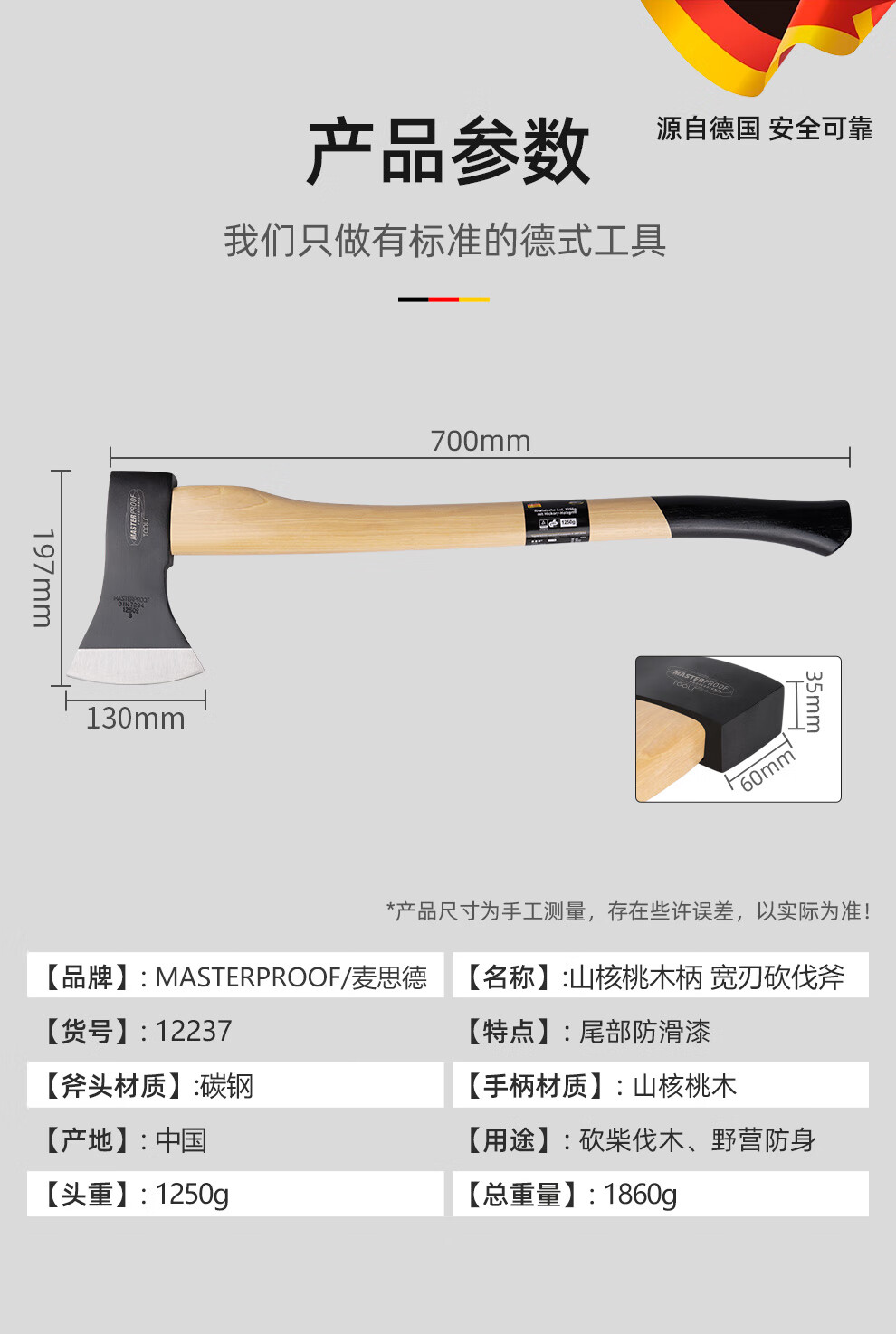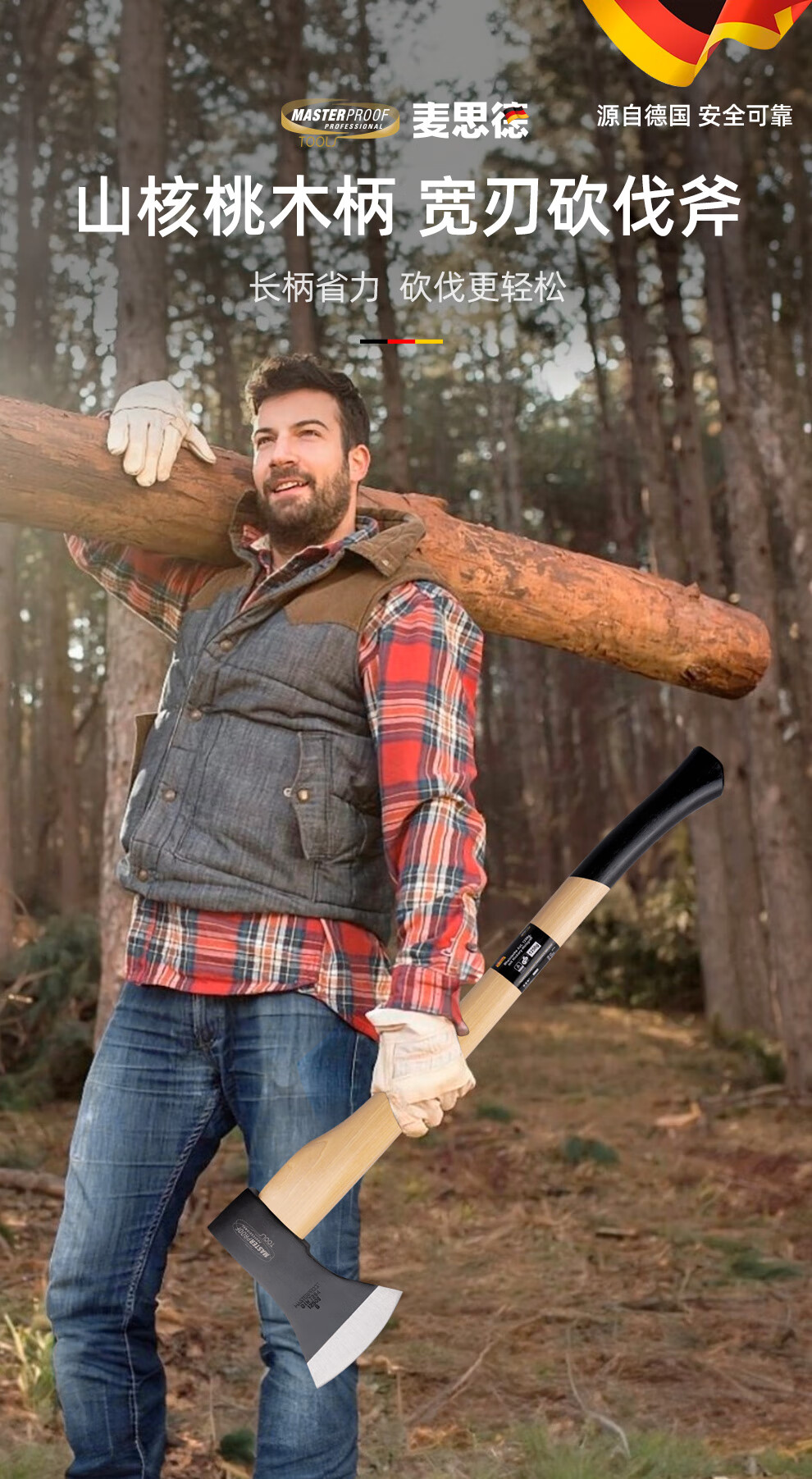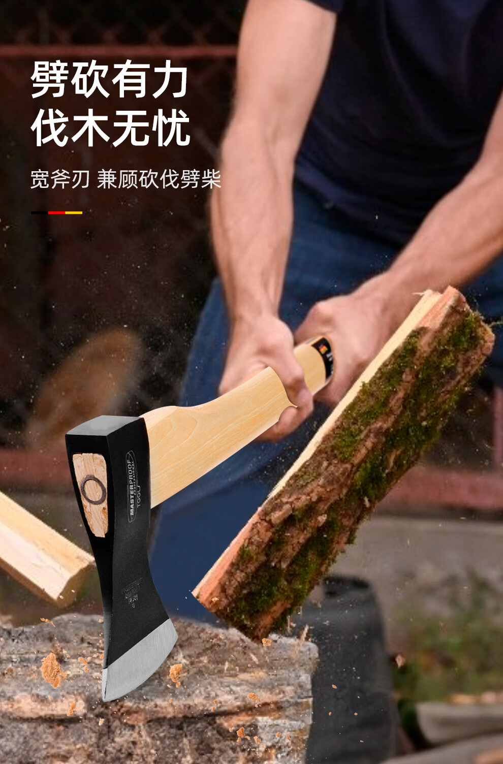 MASTERPROOF imported walnut wood handle logging ax wood splitting artifact outdoor camping ax fire rescue ax tree chopping hand ax