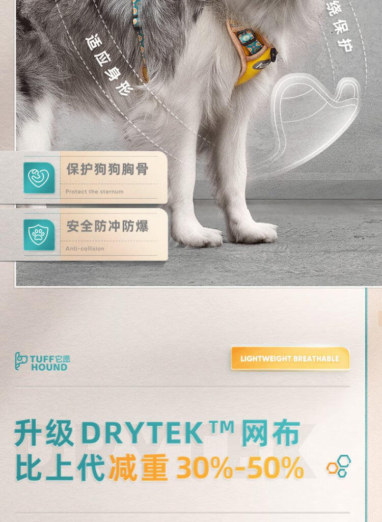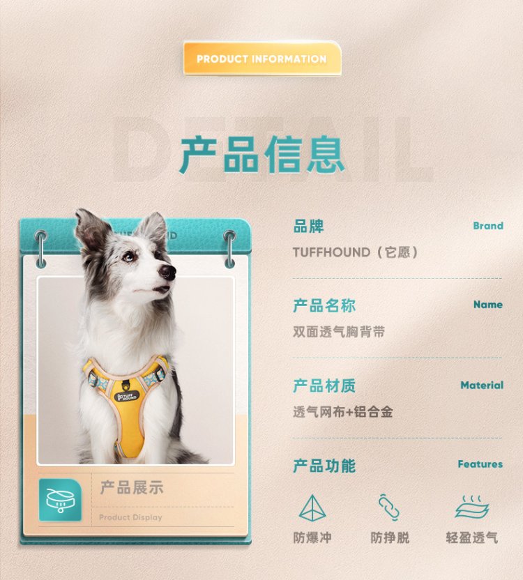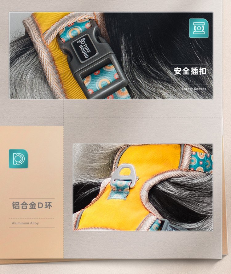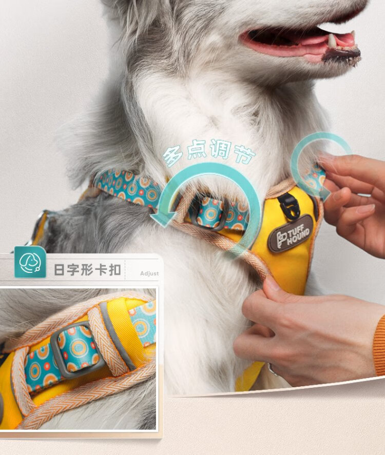 TUFF HOUND dog leash dog leash pet walking rope explosion-proof chest harness for small and medium-sized dogs TH003 yellow set S