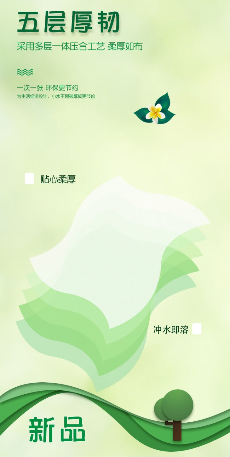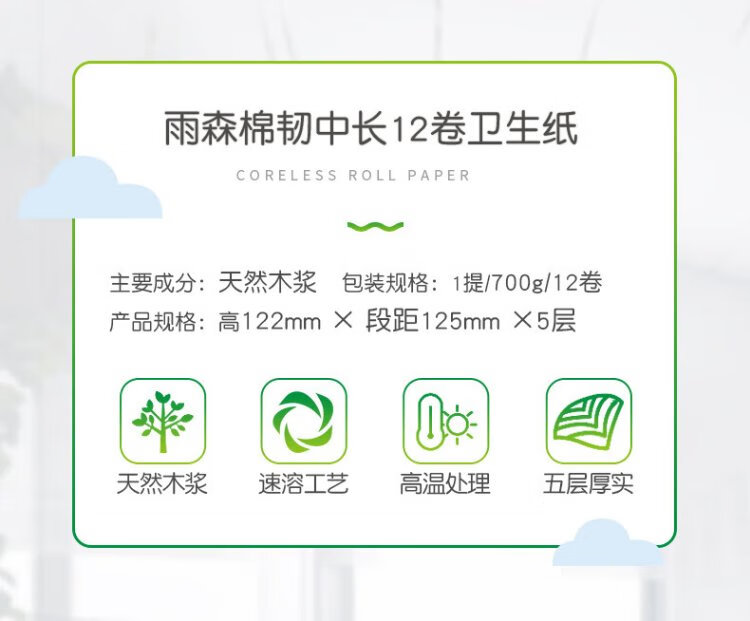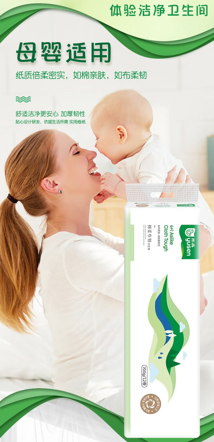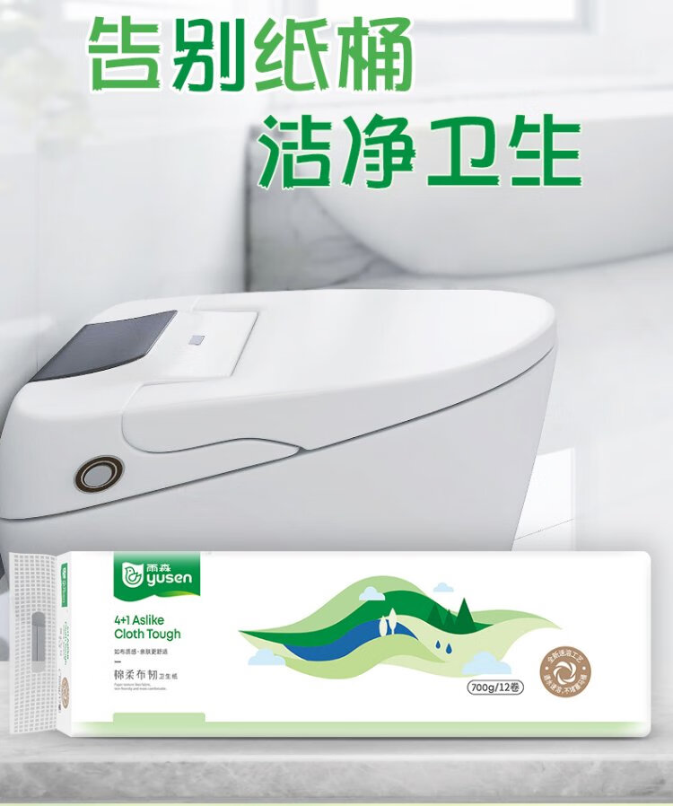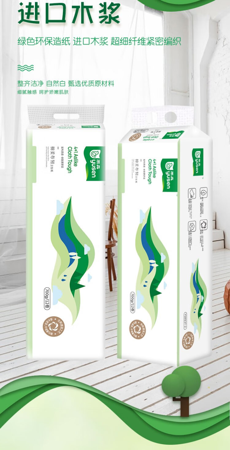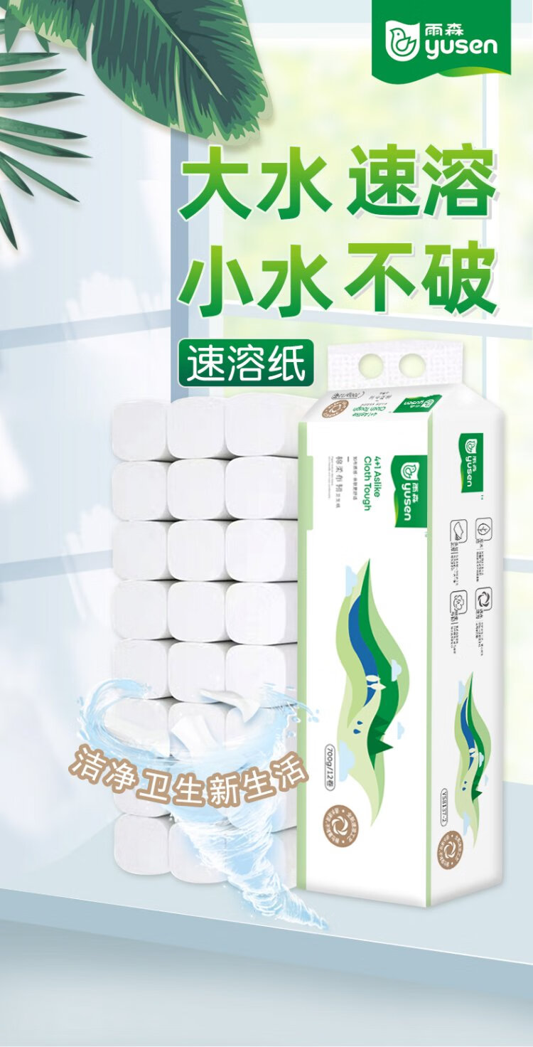 Yusen (YUSEN) instant toilet paper toilet paper roll 700g 12 rolls 5 layers thickened portable pack instant with large water and does not break with small water