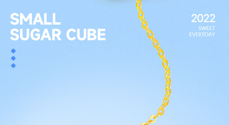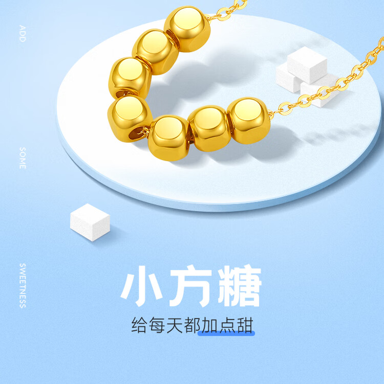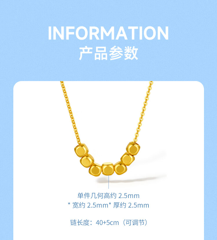 Saturday blessing 18K gold necklace for women, small sugar cube gold necklace, yellow 18K gold, about 40+5cm, birthday gift
