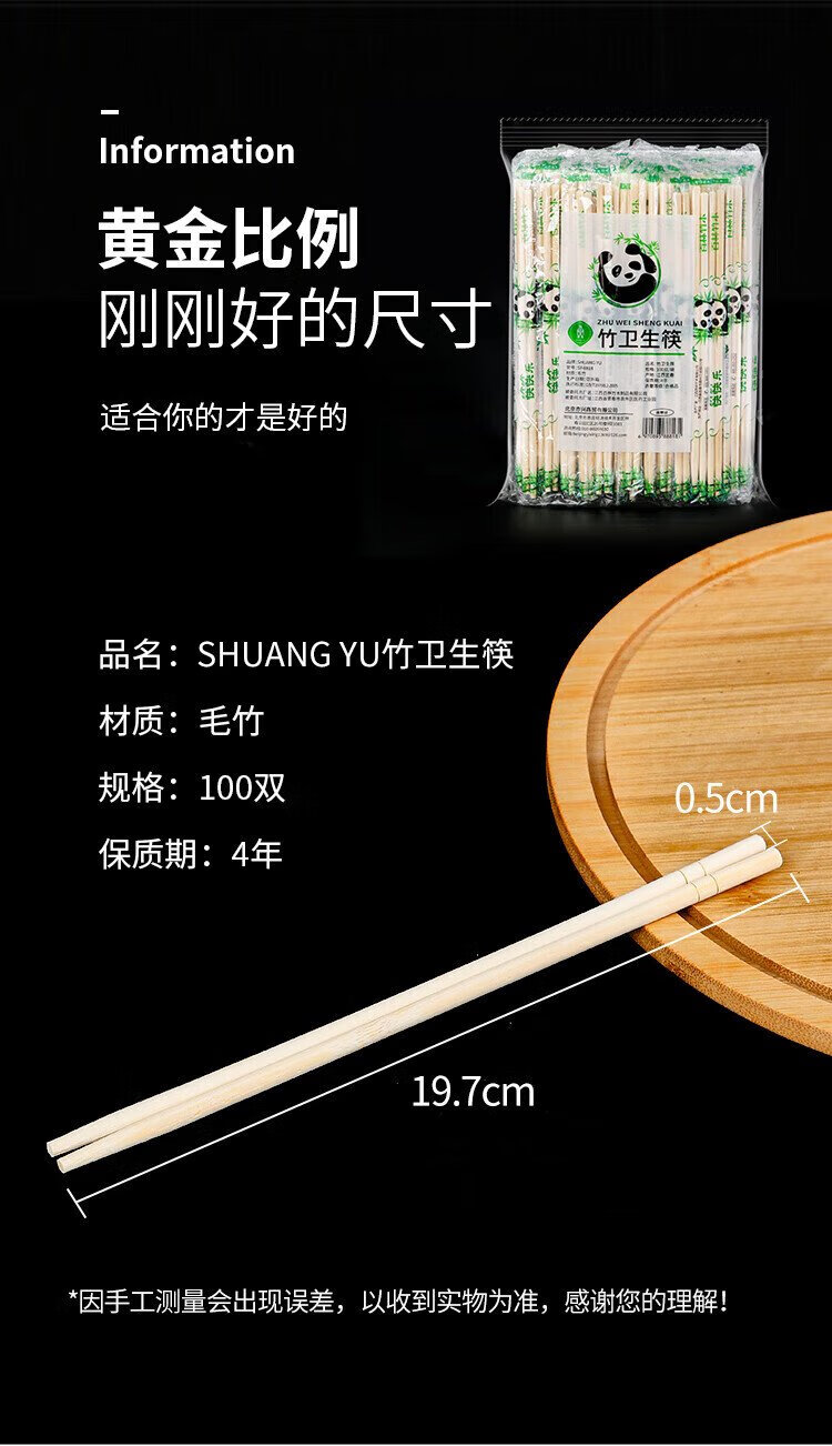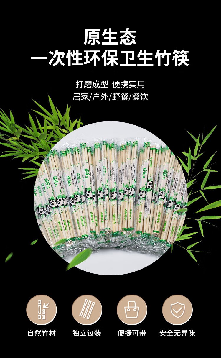 SHUANG YU disposable chopsticks 100 pairs individually packaged household picnic hygienic bamboo chopsticks packaged convenient chopsticks tableware supplies