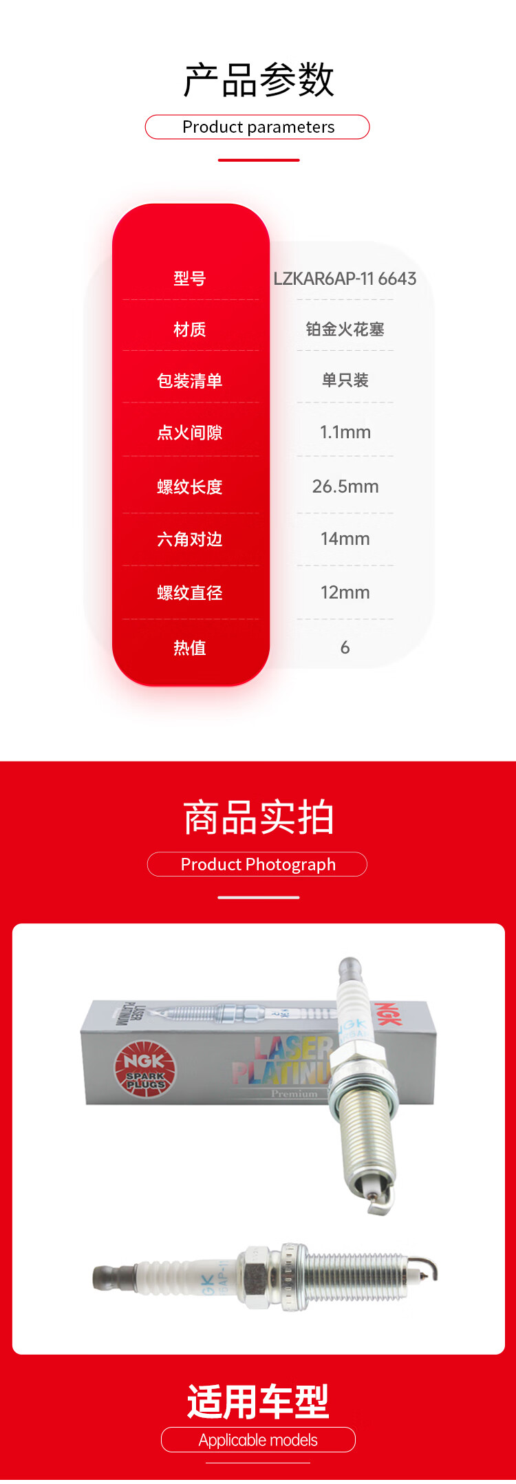 NGK platinum spark plug LZKAR6AP-11 single pack Tiida Sunshine Sylphy Qijun Qashqai Ma Chi Liwei Qichen