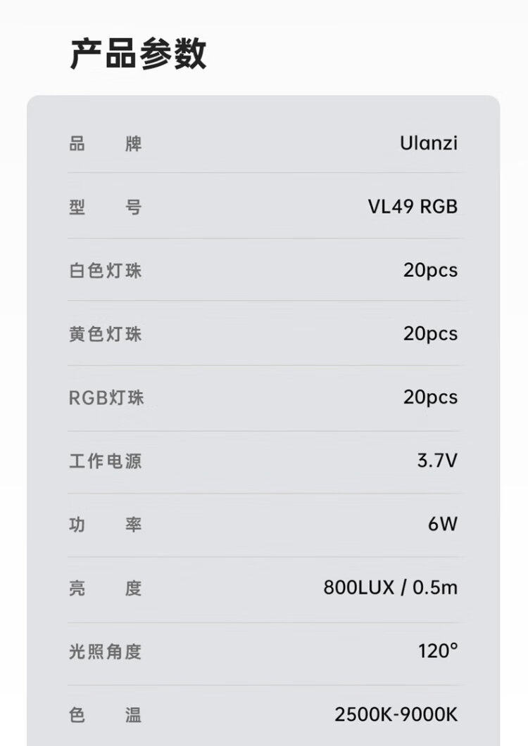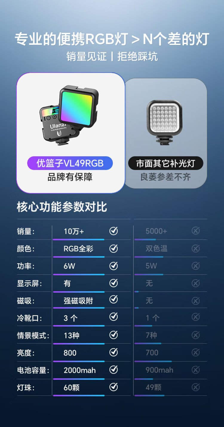 Ulanzi excellent basket VL49 RGB magnetic full-color fill light portable LED pocket dual-color temperature live photography light micro-single camera flash mobile phone indoor portrait light always on