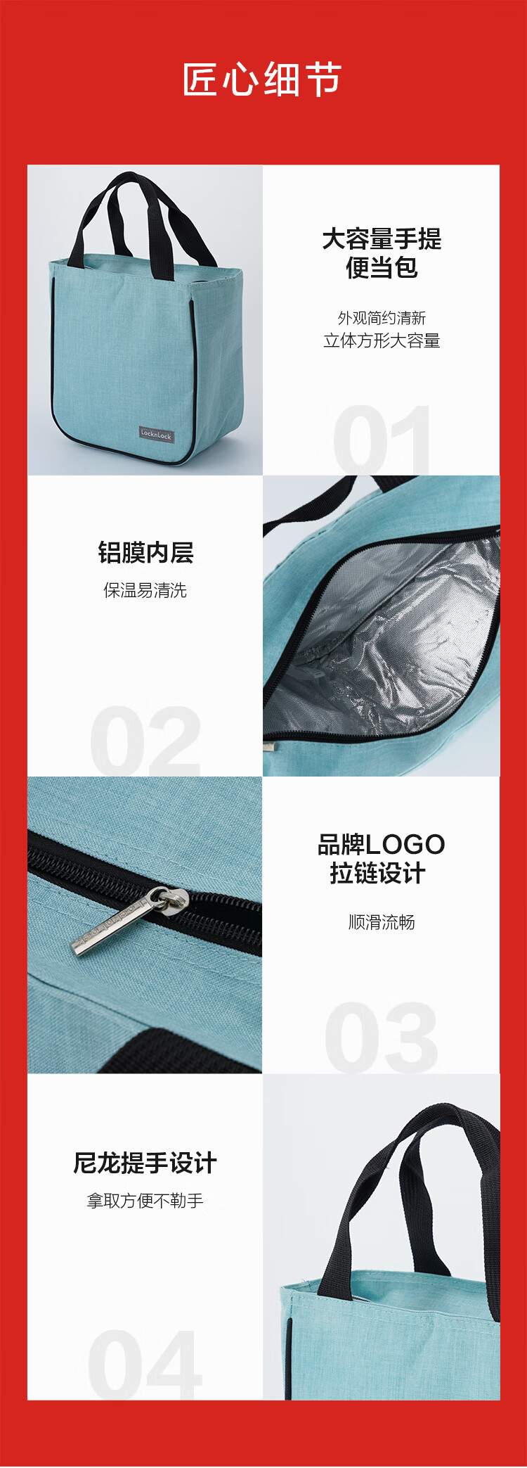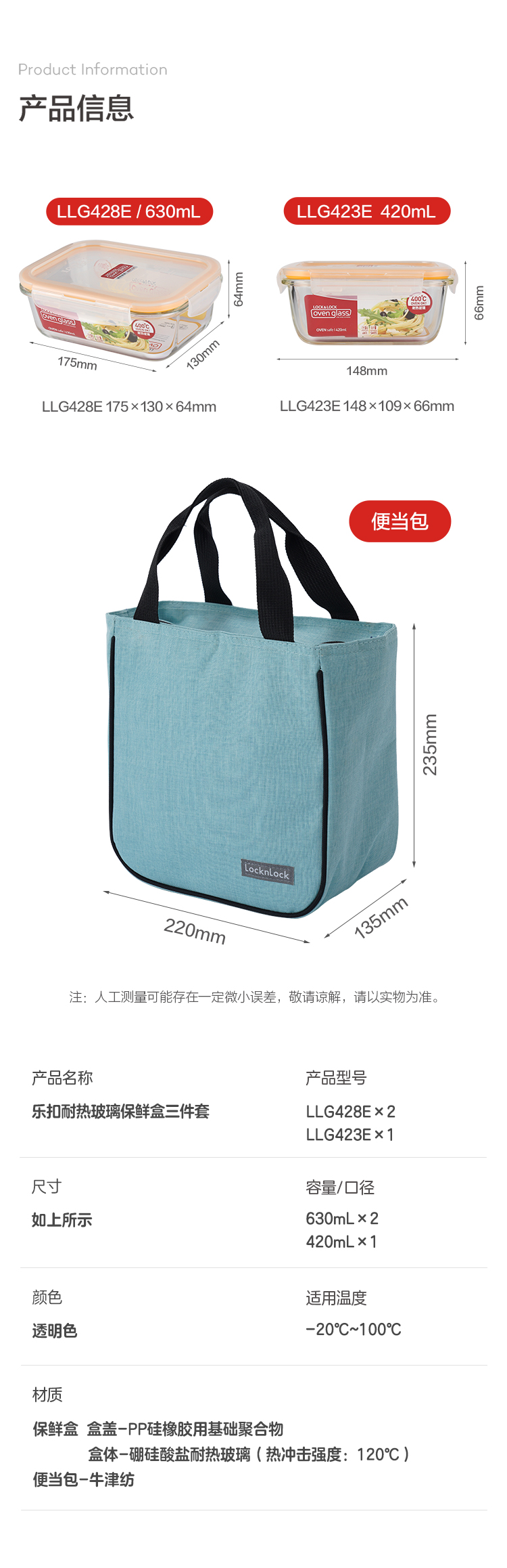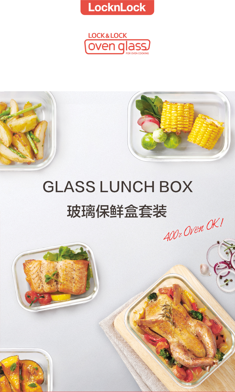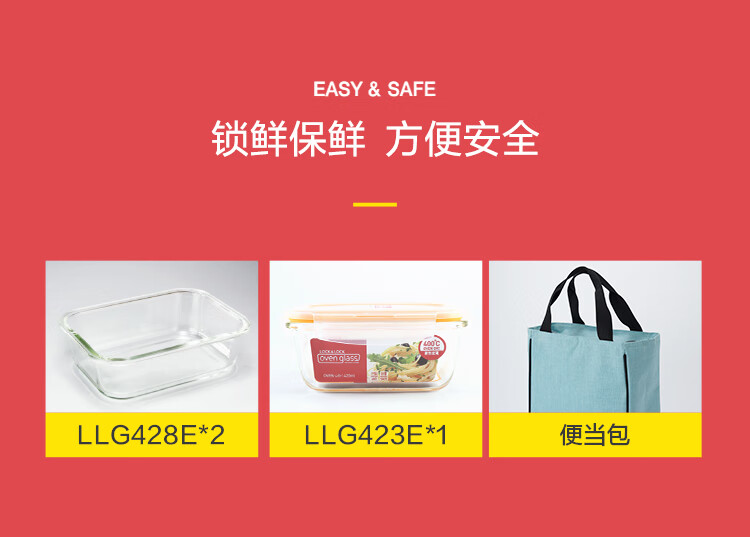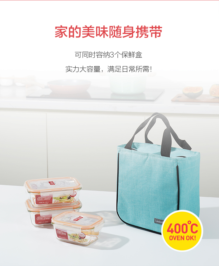 LOCK&LOCK heat-resistant glass crisper, microwave lunch box, work student lunch box, fruit lunch box with lunch bag three-piece set