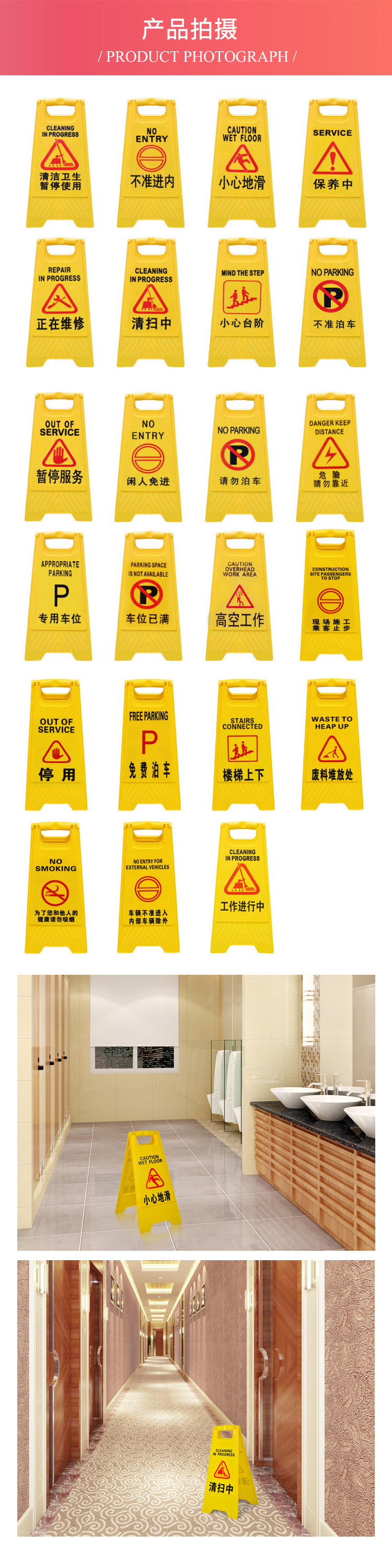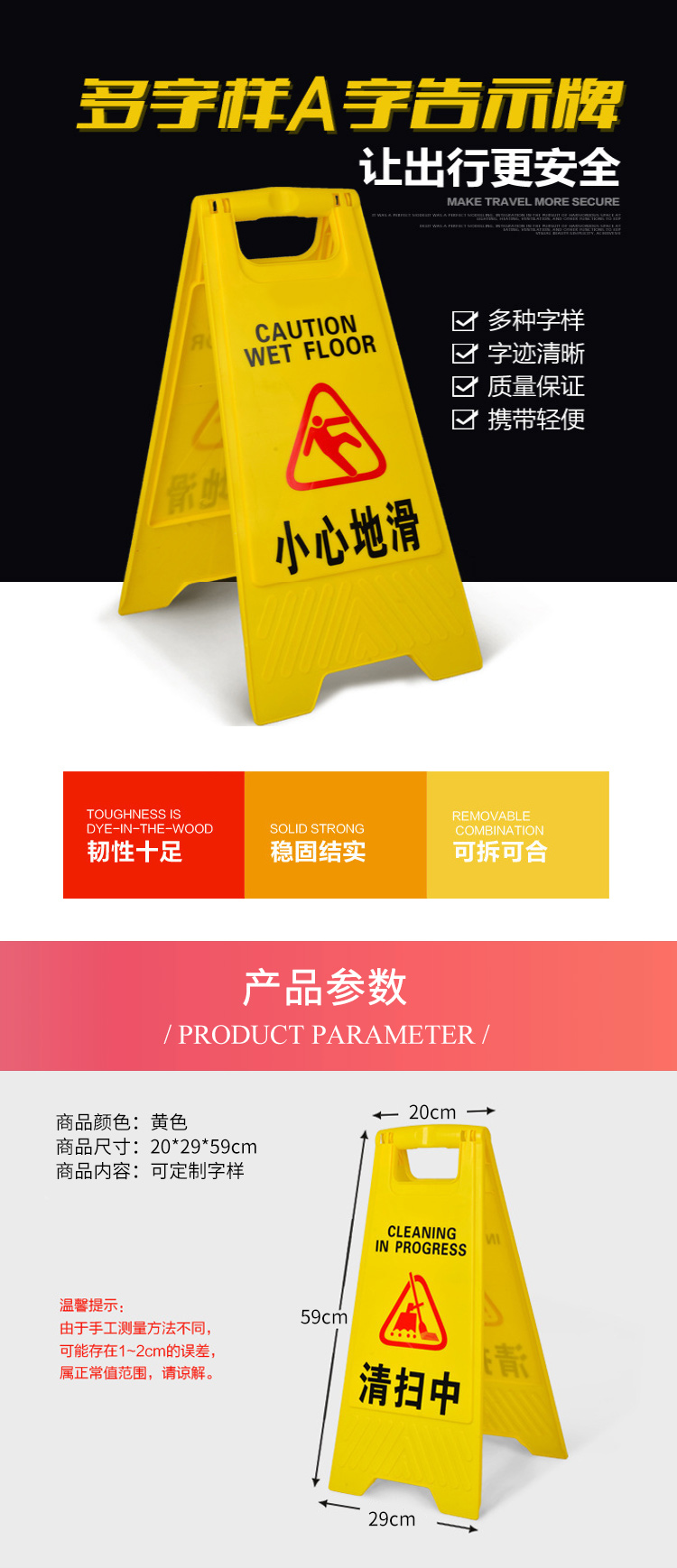 Bingyu BYly-45 slip carefully folding A-shaped sign thickened warning sign herringbone plastic notice sign prompt sign