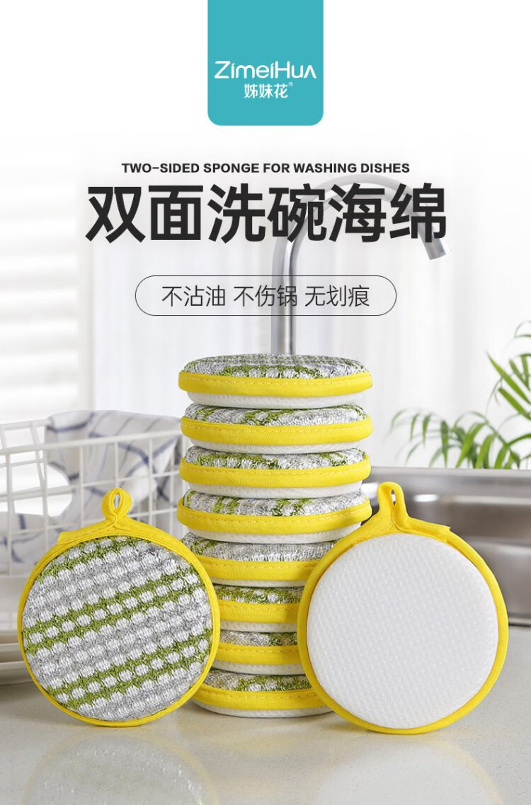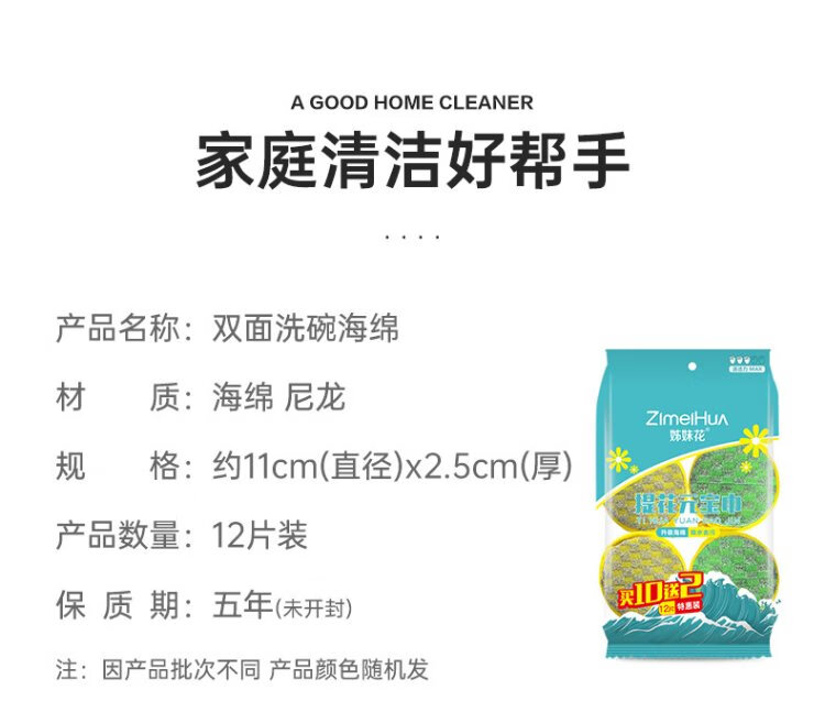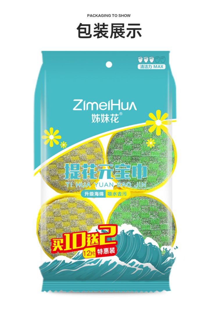 Sisters Flower sponge double-sided dishwashing cloth 12-piece kitchen pot and dishwashing jacquard ingot towel in random colors