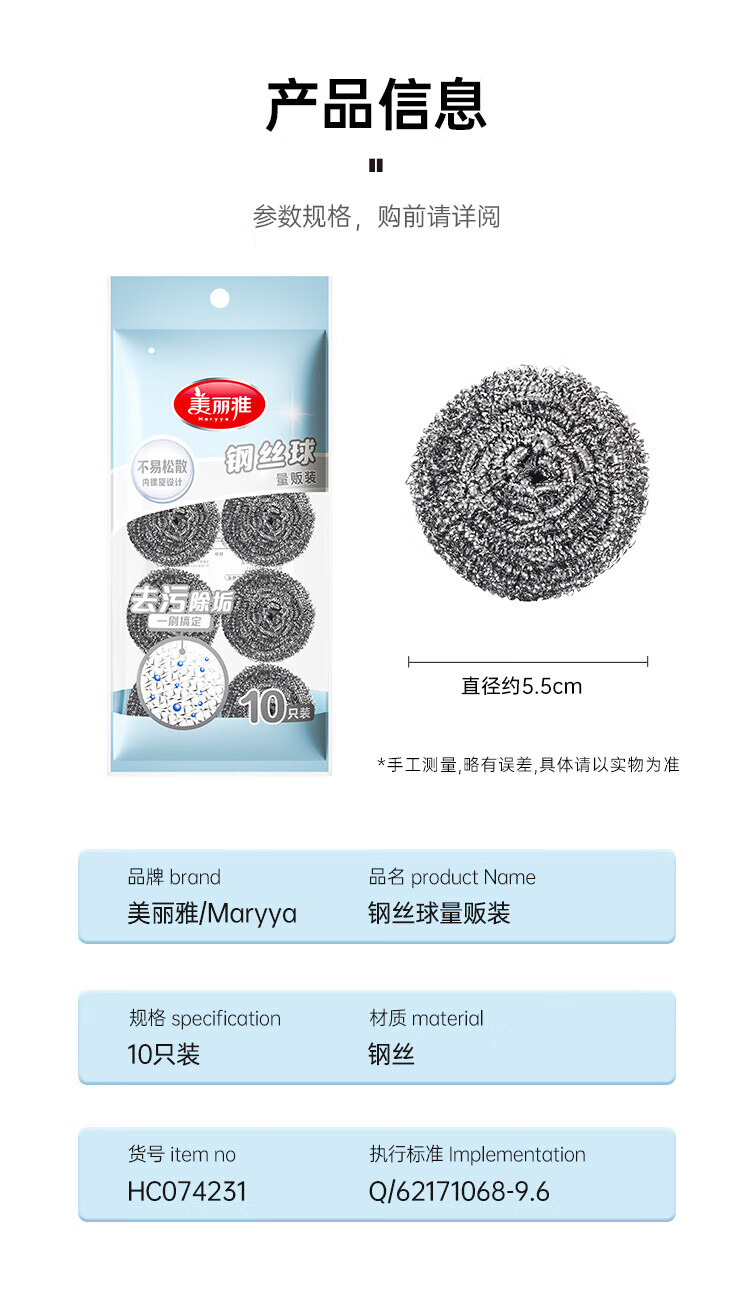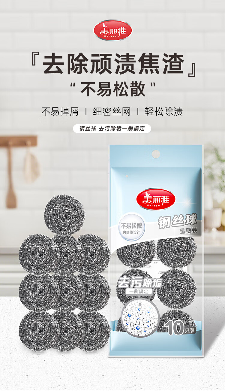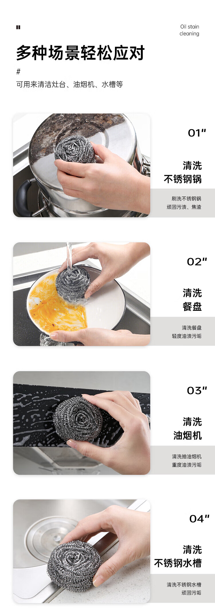 Meliya steel wire balls 10 pieces for home kitchen to remove oil stains, wash dishes and pots, stainless steel cleaning ball brush, not easy to rust and lose wires