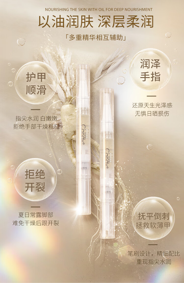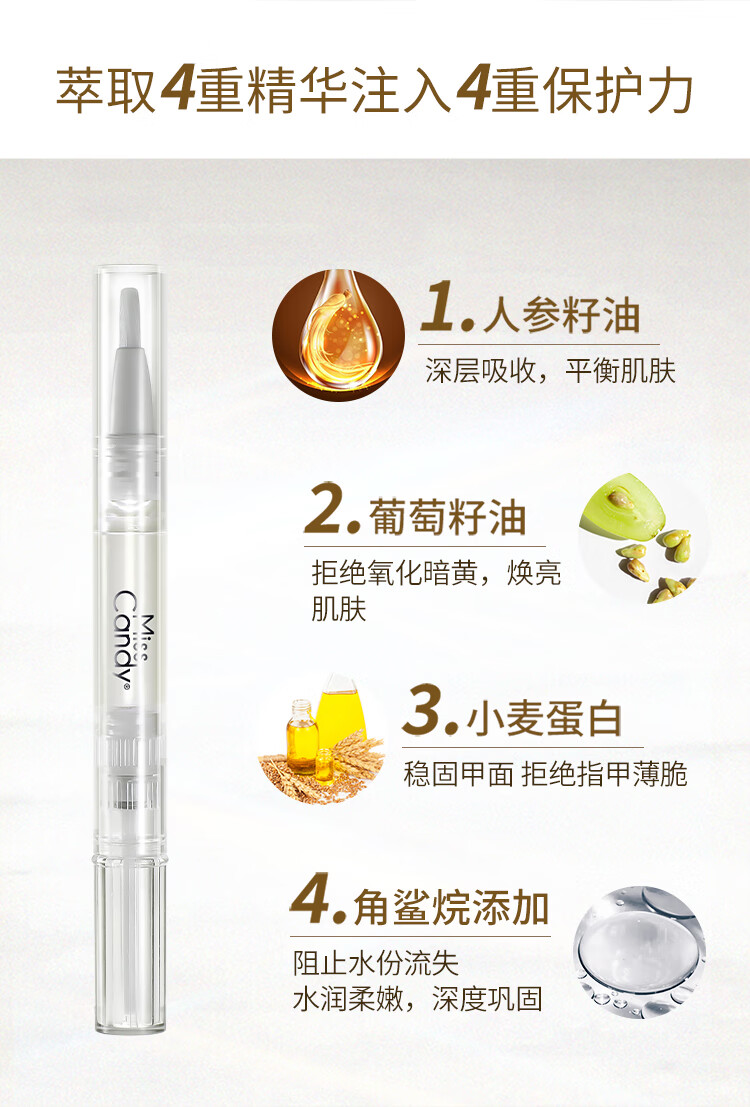 Miss Candy nail oil finger edge oil transparent nutrient oil armor thin crisp soft break layered ginseng seed essence pen 2ml