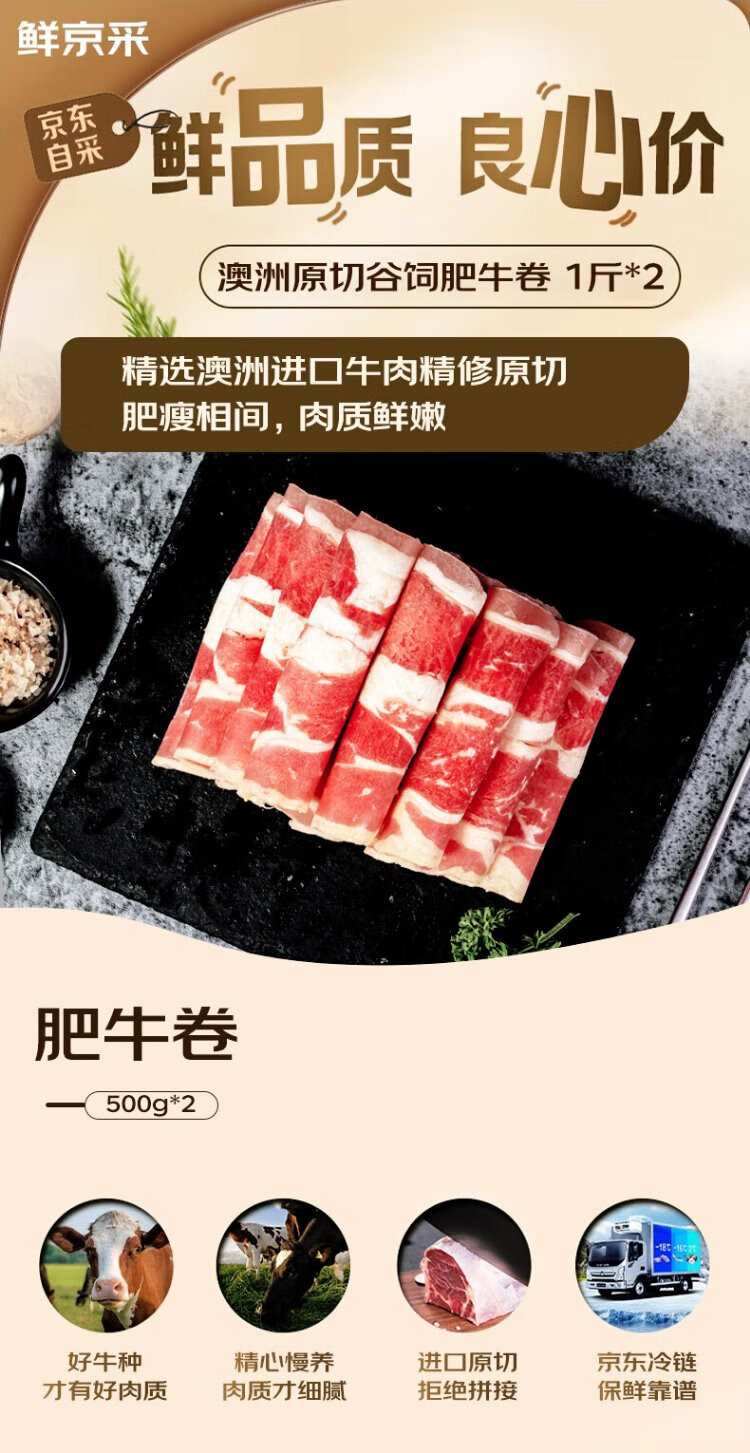 Xian Jing Cai Selection & Coles Australian Original Cut Grain Fed Fatty Beef Roll 1Jin Jin is equal to 0.5kg *2 Shabu Shabu Hot Pot Ingredients Real Original Cut