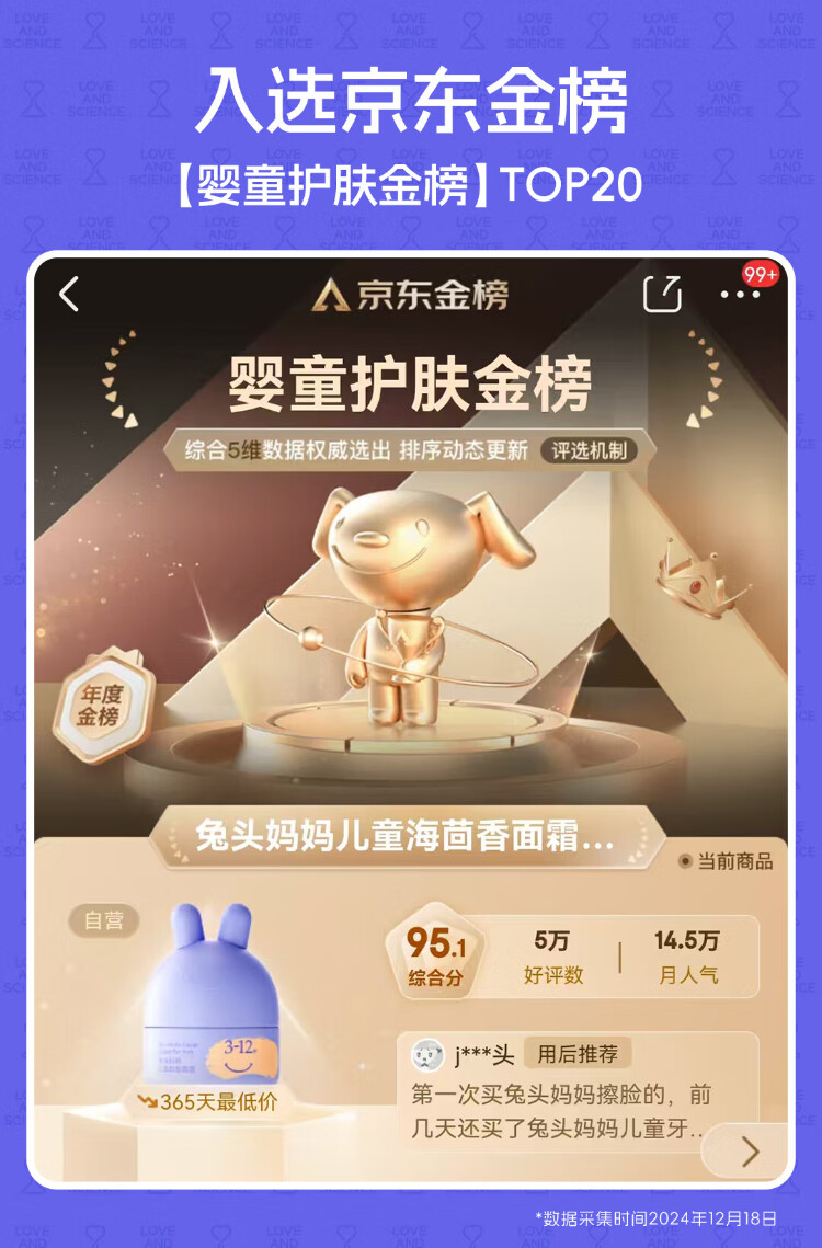 Rabbit head mother children's skin care fetal fat barrier cream baby baby moisturizing cream moisturizing soothing moisturizing cream 3-12 years old 45g