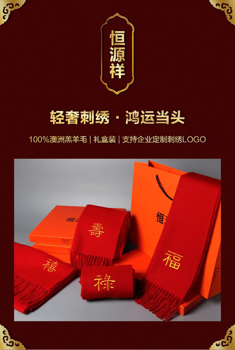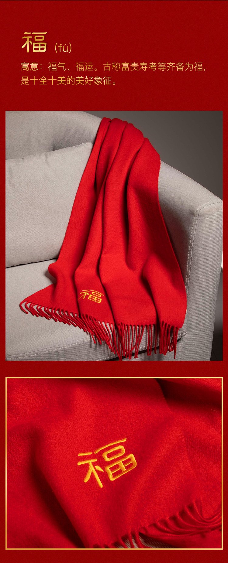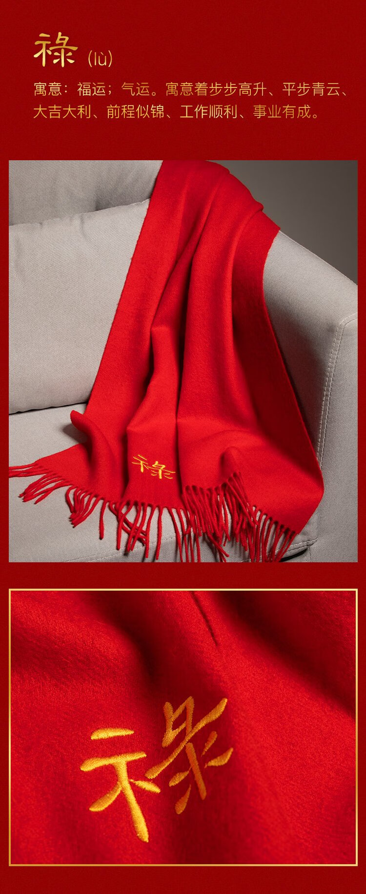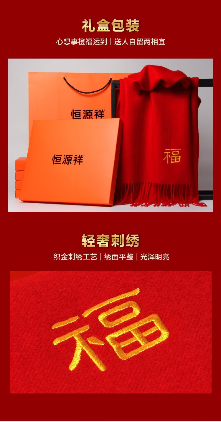 Hengyuanxiang pure wool scarf for men and women in winter warm red New Year's gift for the elderly scarf zodiac year Chinese red birthday gift