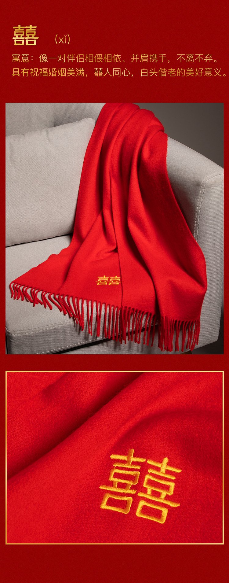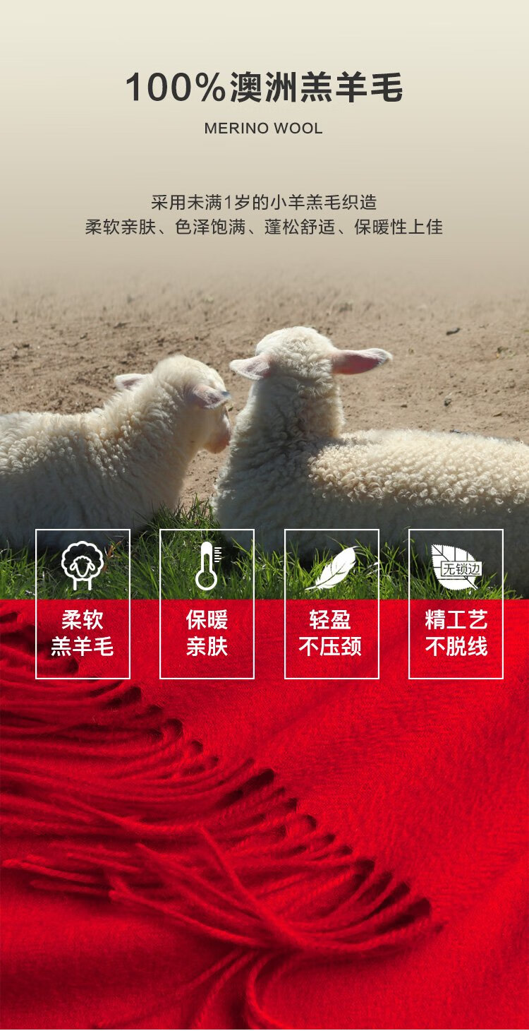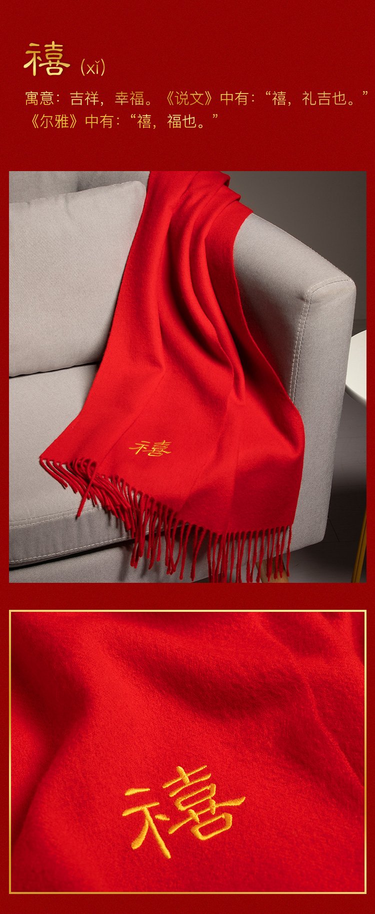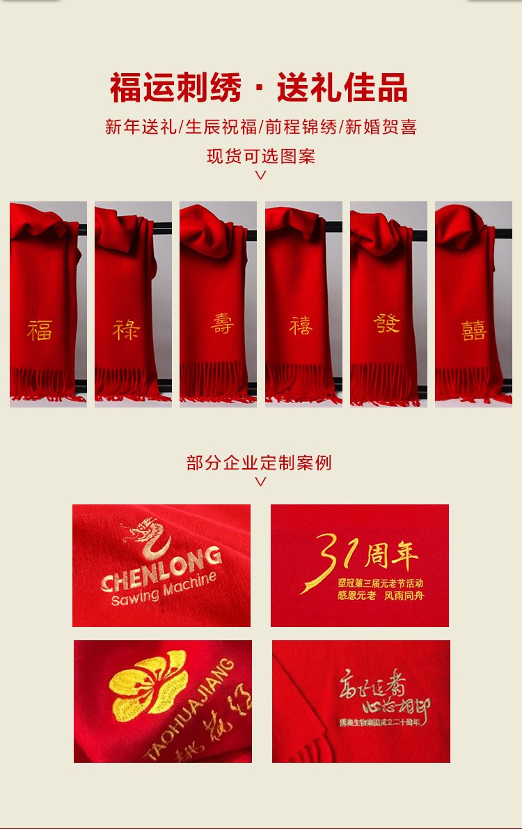 Hengyuanxiang pure wool scarf for men and women in winter warm red New Year's gift for the elderly scarf zodiac year Chinese red birthday gift