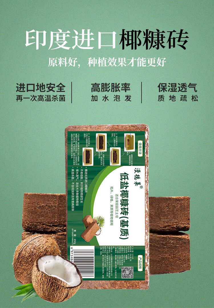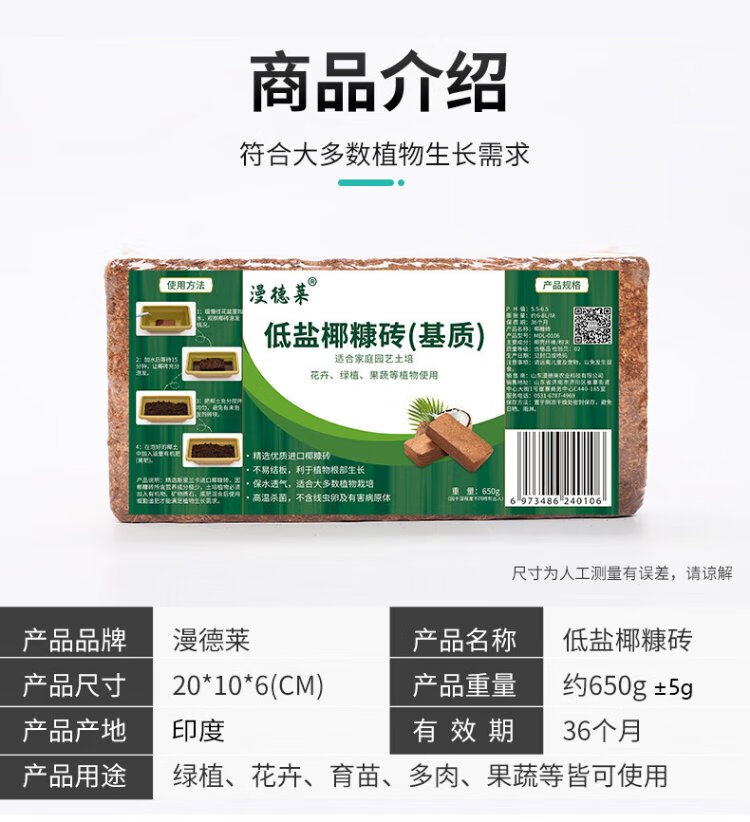Mandelai 650g*3 coconut bran bricks, coconut bricks, succulent soil, flower planting soil, flower planting soil, peat coconut bran soil