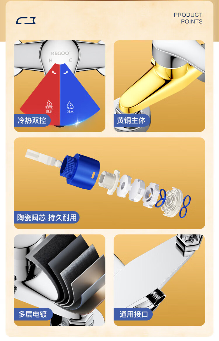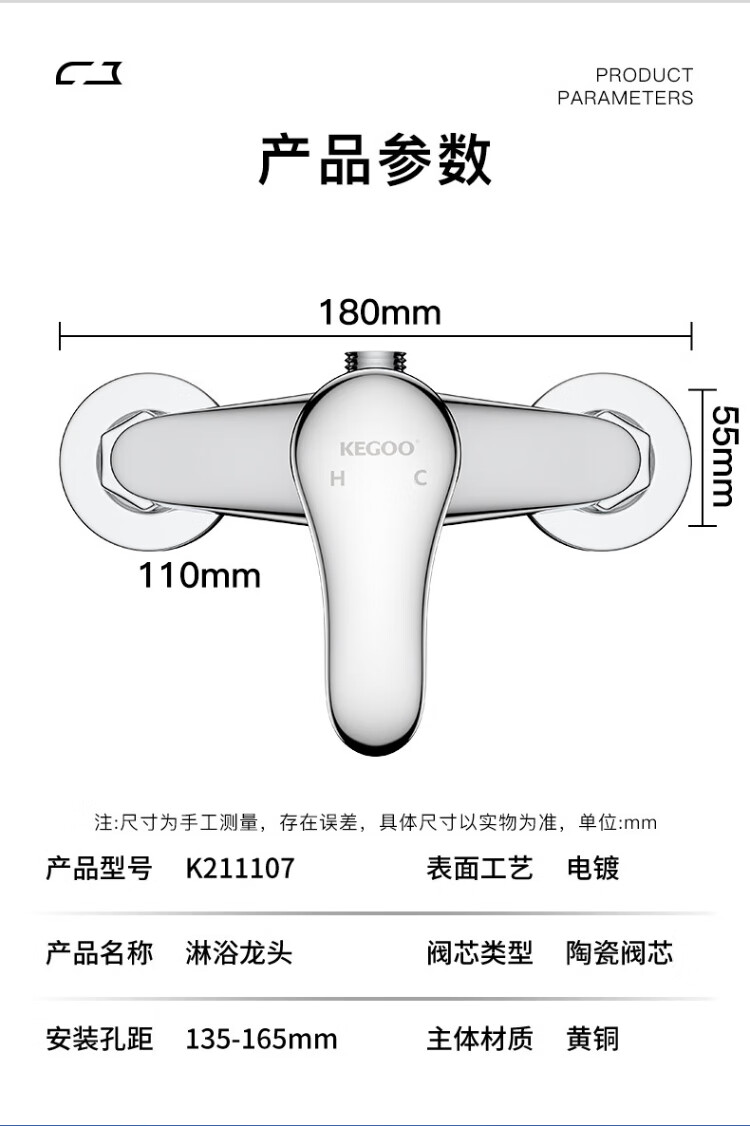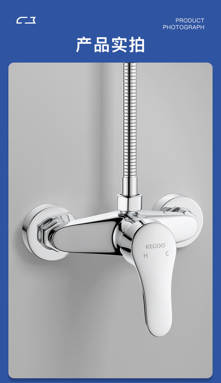 KEGOO Brass Shower Faucet Set Hot and Cold Water Mixing Valve Concealed Shower Switch Bathroom Rain Shower K211107