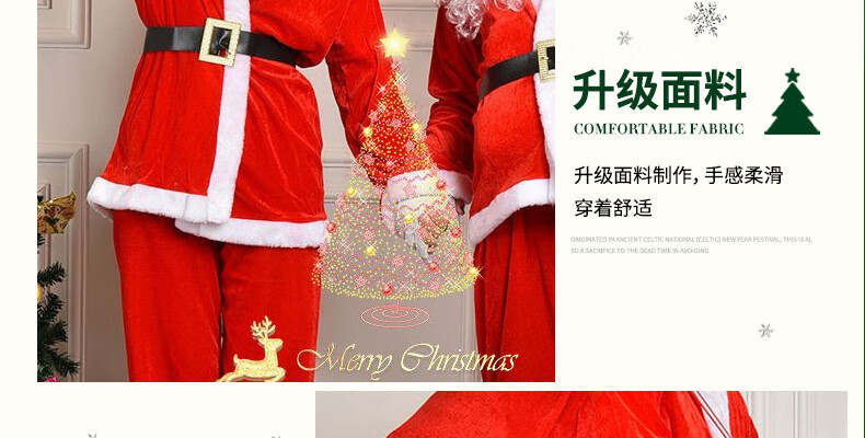 Onizi Santa Claus costume 6-piece Christmas decoration gold velvet high-end men's and women's Christmas clothes Christmas decoration