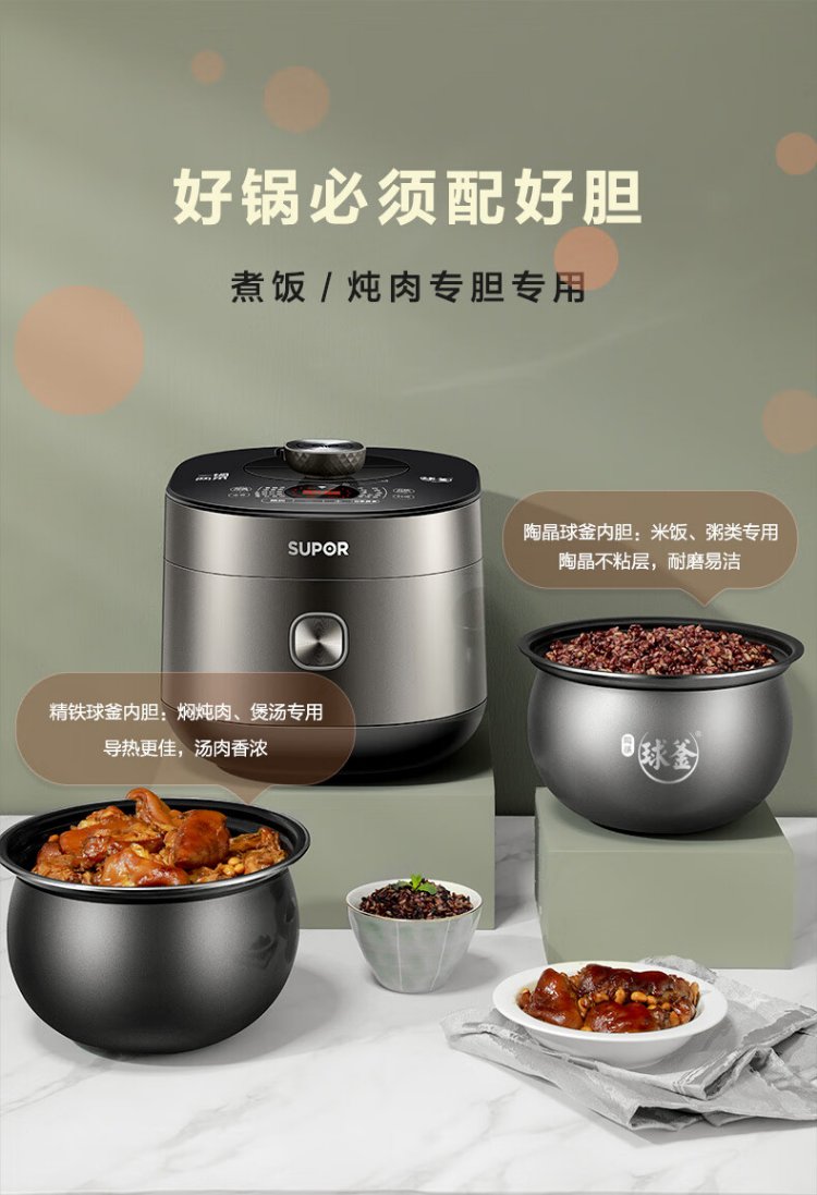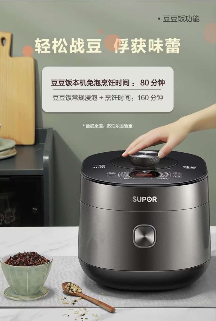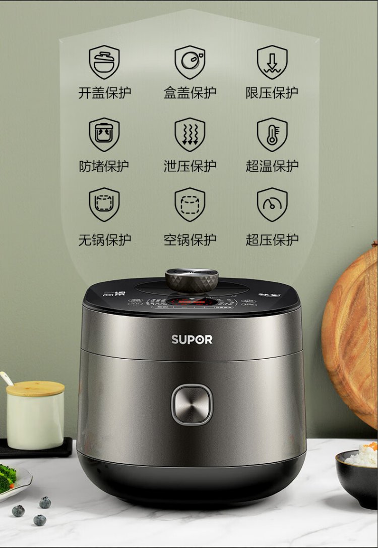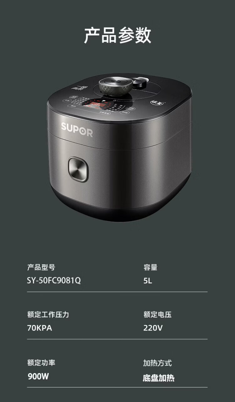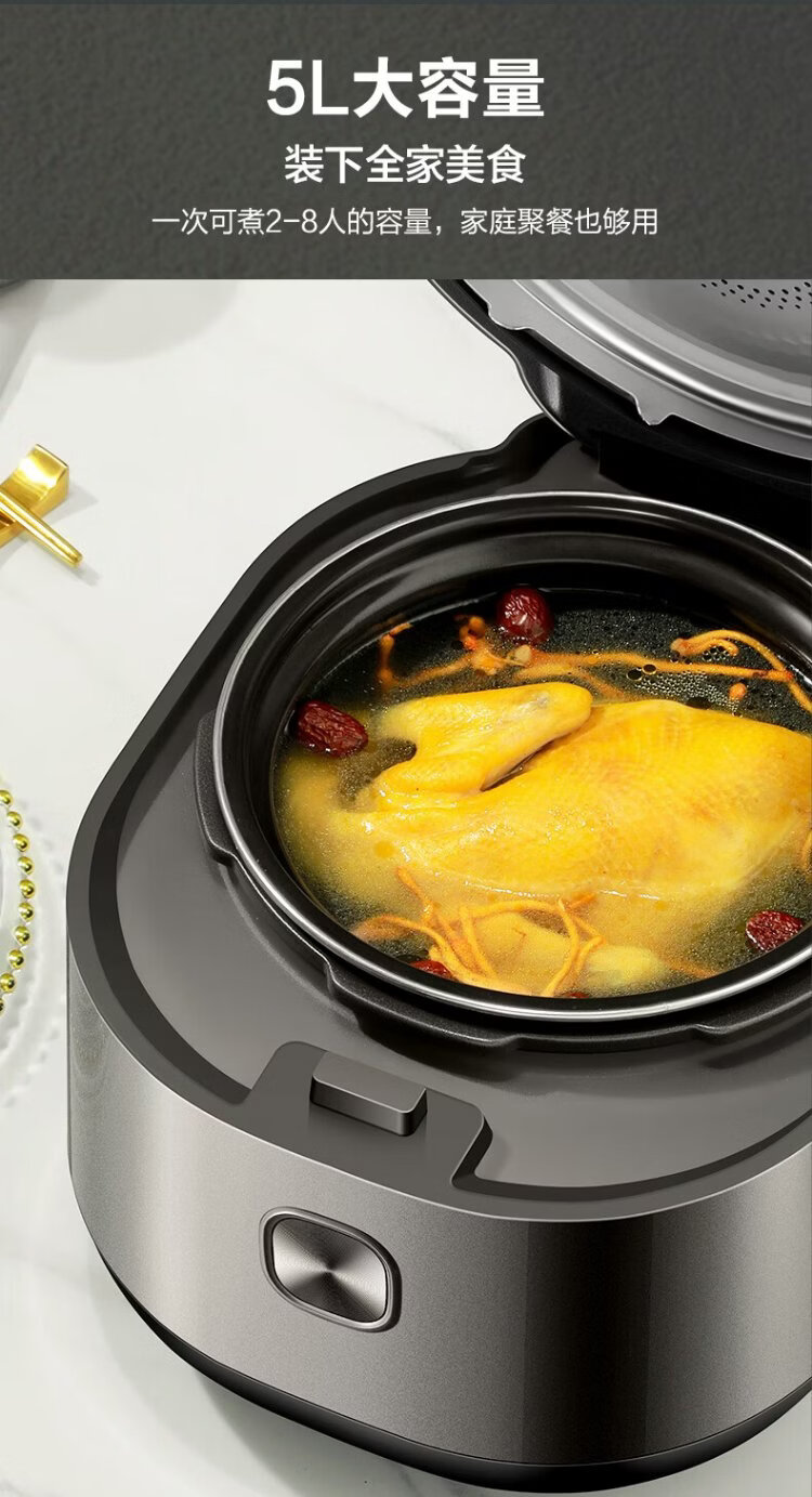 SUPOR fully automatic intelligent reservation electric pressure cooker 5L household steamer upper steaming lower boiling ball kettle double bladder 50FC9081Q rice cooker pressure cooker 4-6 people